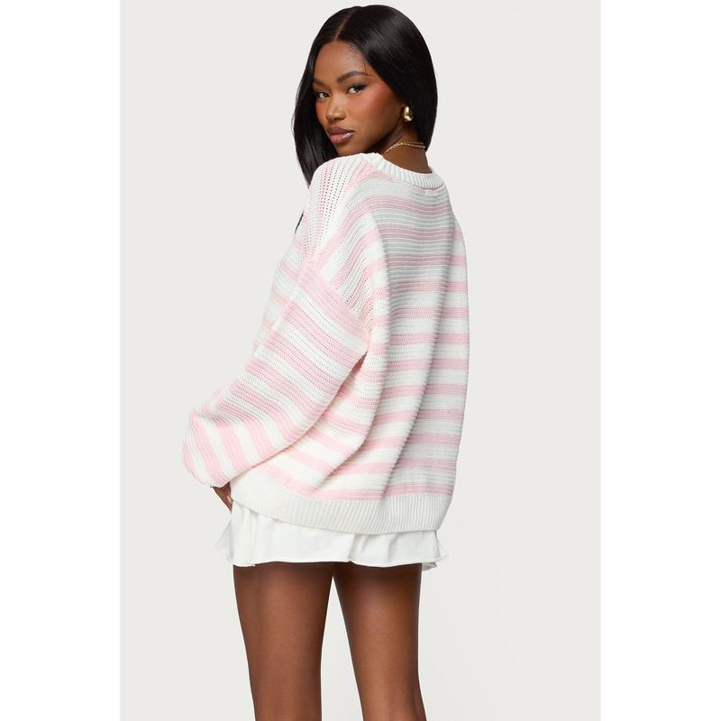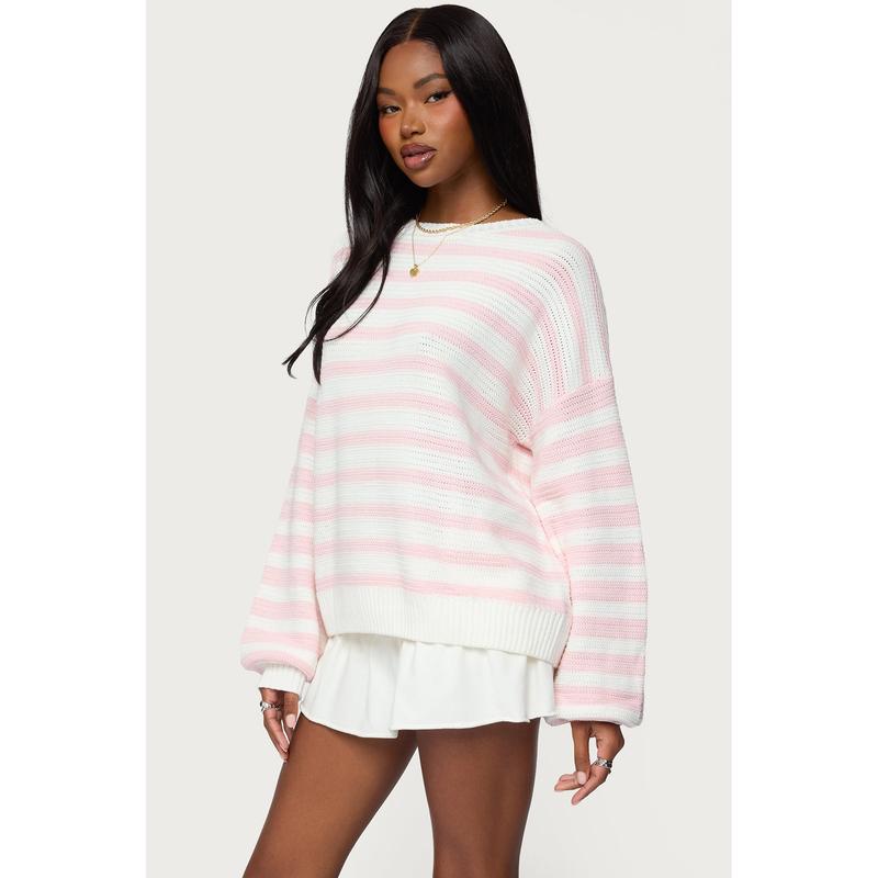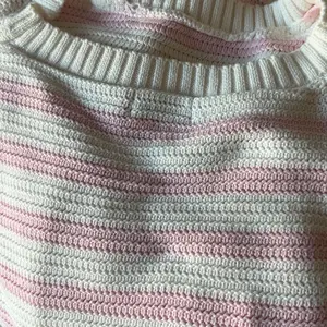 I love pink and white stripes on anything. This is cute. The reason for 3 stars is because it’s just SO BIG. I get it if you like that look but an XS/S should not be this huge. It’s not soft but not scratchy. Just a rough fabric.
