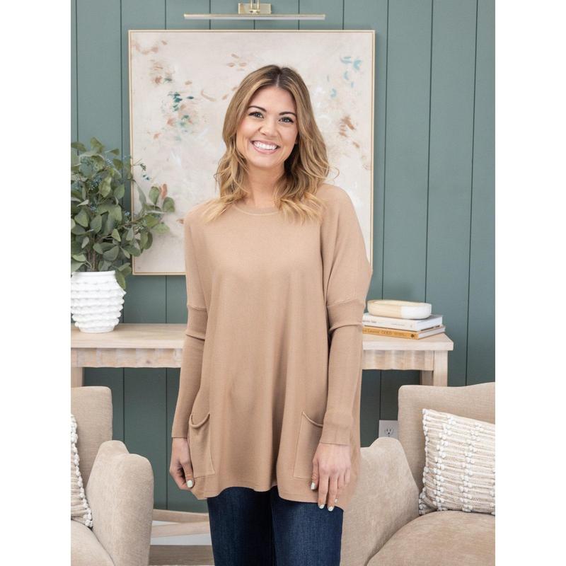 Oversized fit which I like and oh so soft and cozy!!!! These tops are very nice quality! Glad I ordered in several colors