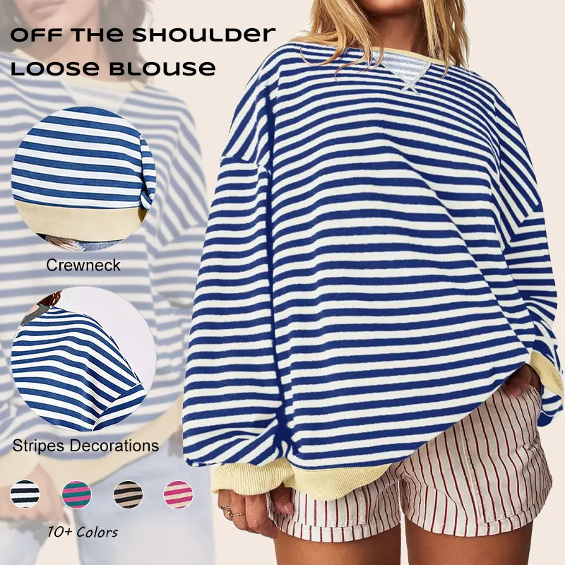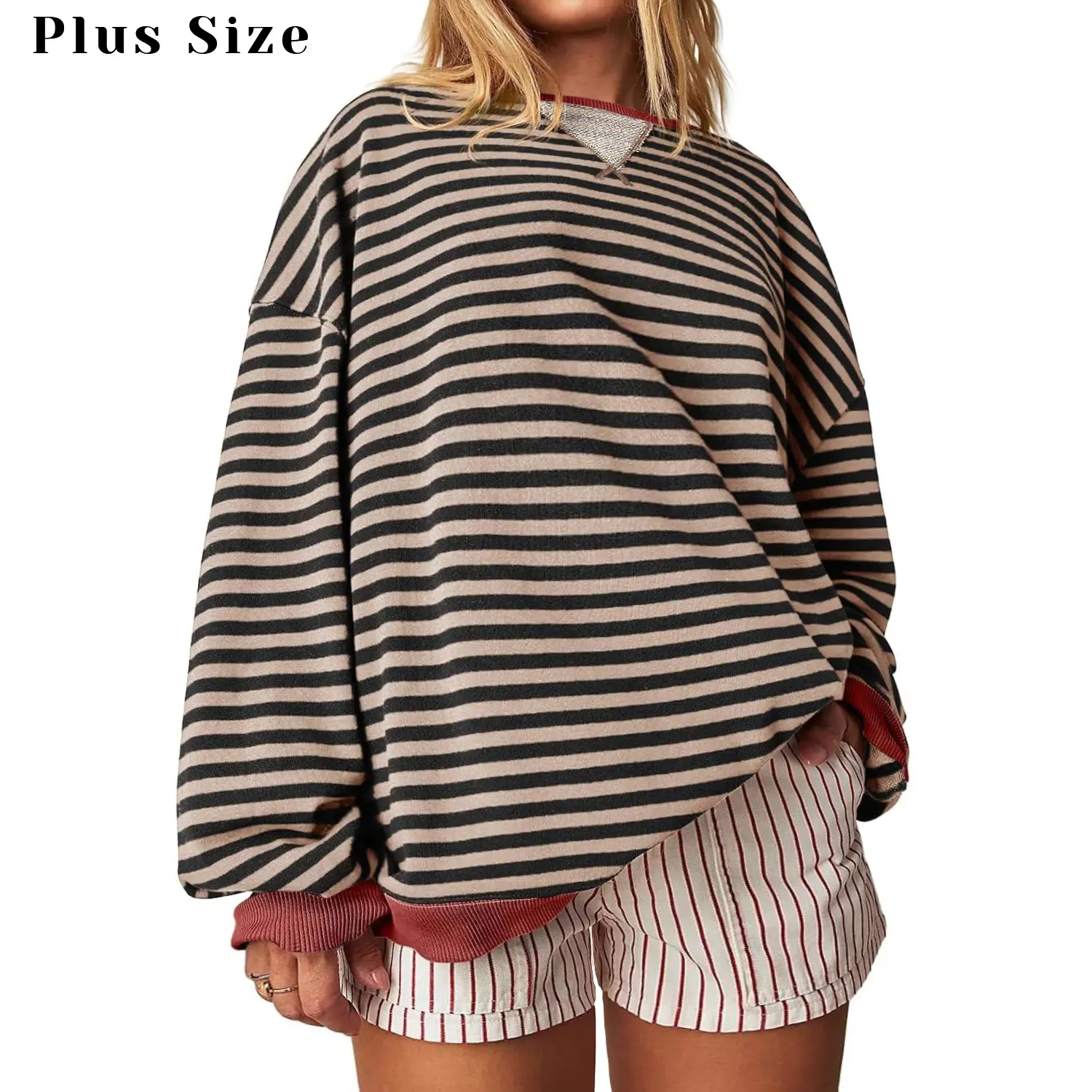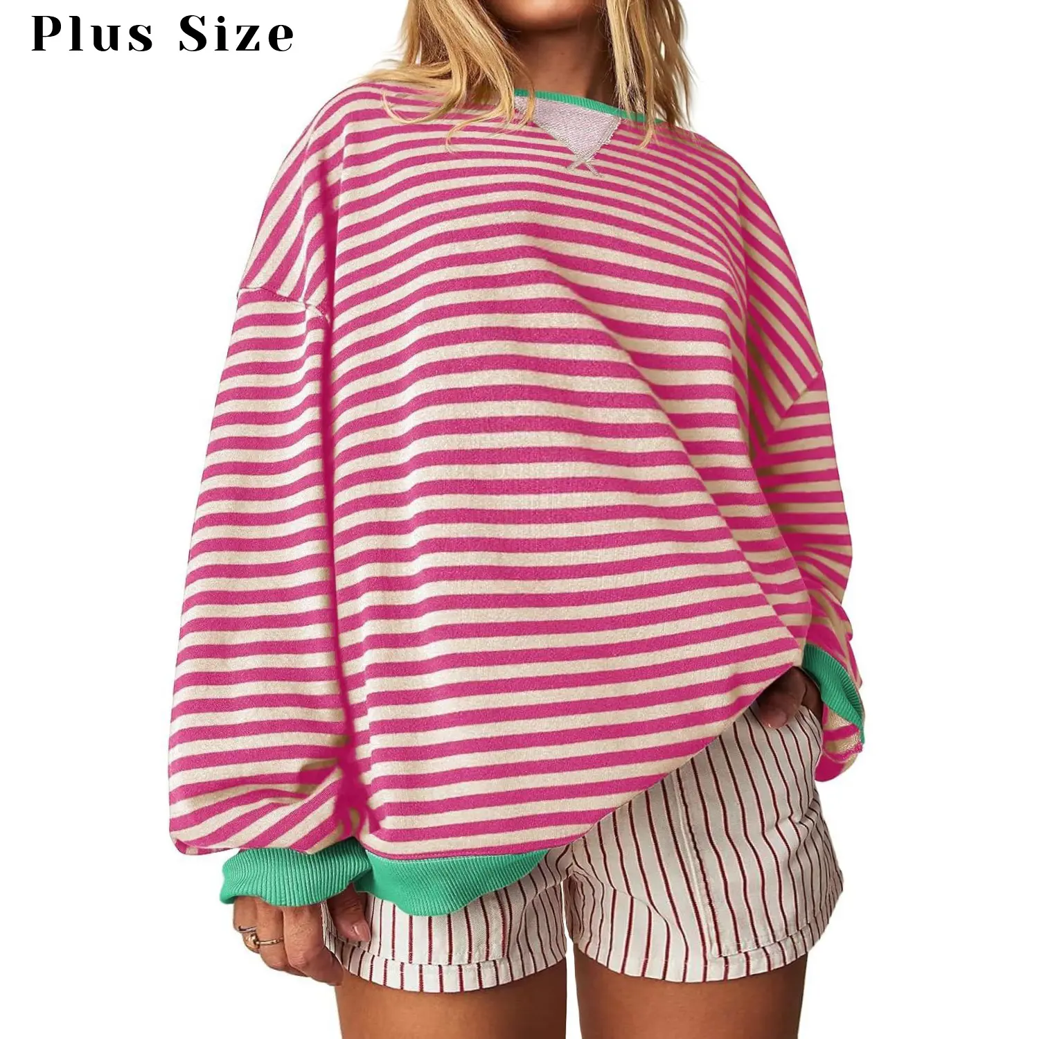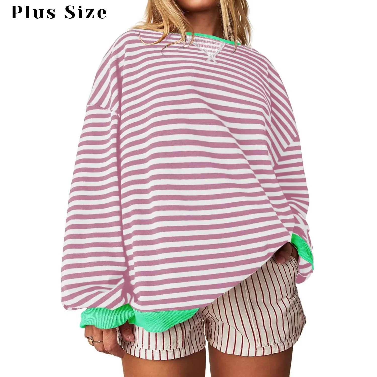 [What materials we use] : We are committed to providing our customers with quality products. Super soft, elastic, breathable and skin-friendly, women's oversized striped sweatshirt is made of high-quality cotton blend, making it comfortable and relaxing all day long, suitable for spring, summer and fall.