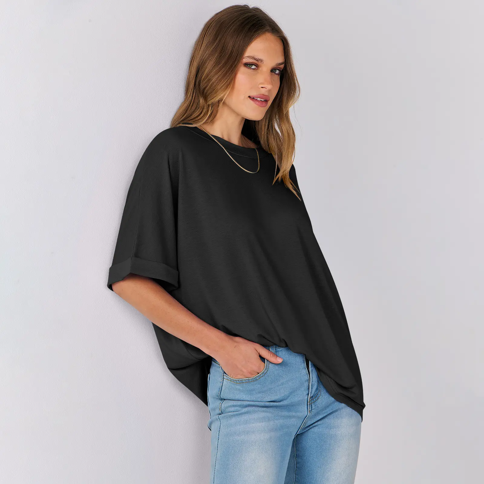·Designs: Crewneck, short roll sleeves, oversized fit, drop shoulders, tunic length, basic tees, loose fit shirts, soft and comfortable fabric