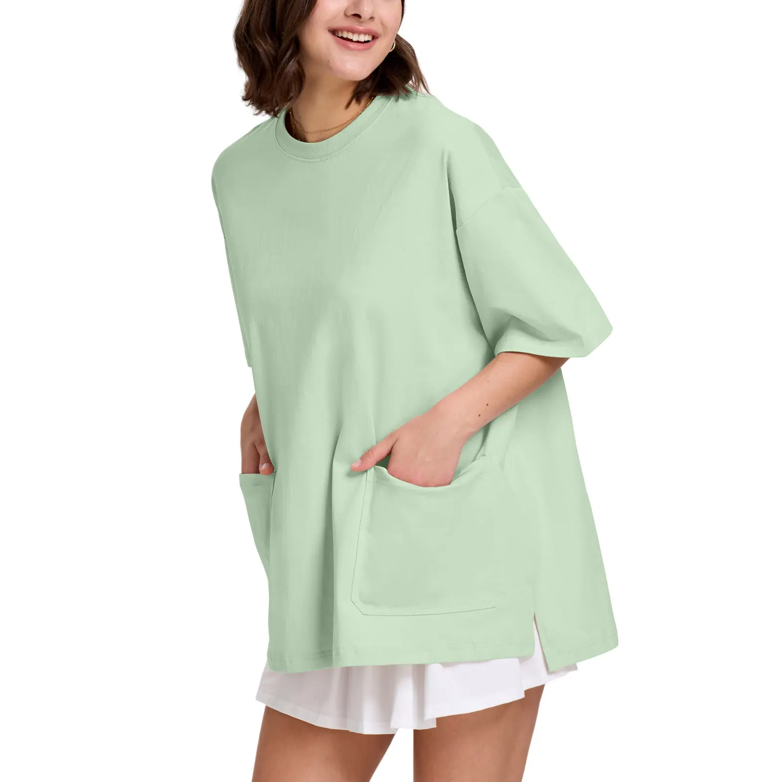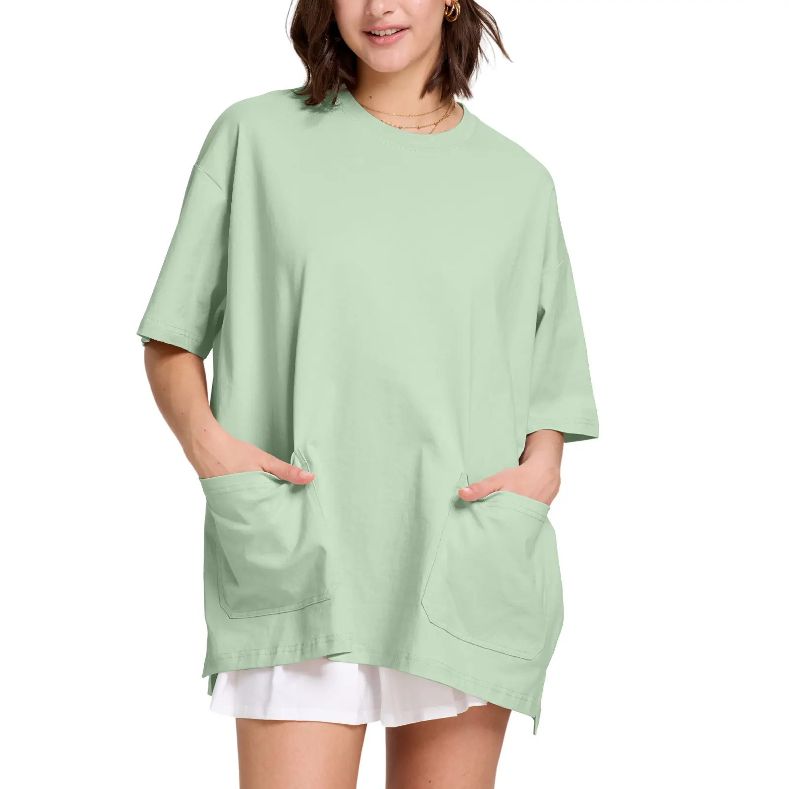 Upgrade your everyday style with this unisex oversized t-shirt, designed with a relaxed batwing sleeve silhouette and three spacious utility pockets for both fashion and function. The large front pockets add a bold streetwear edge while offering practical storage for small essentials. Crafted from a soft, breathable fabric, this loose fit tee ensures all-day comfort and effortless mobility. Its minimalist, plain design makes it easy to pair with jeans, joggers, or shorts—perfect for layering or wearing solo. Whether you're heading out or lounging at home, this statement tee blends urban style with everyday ease.