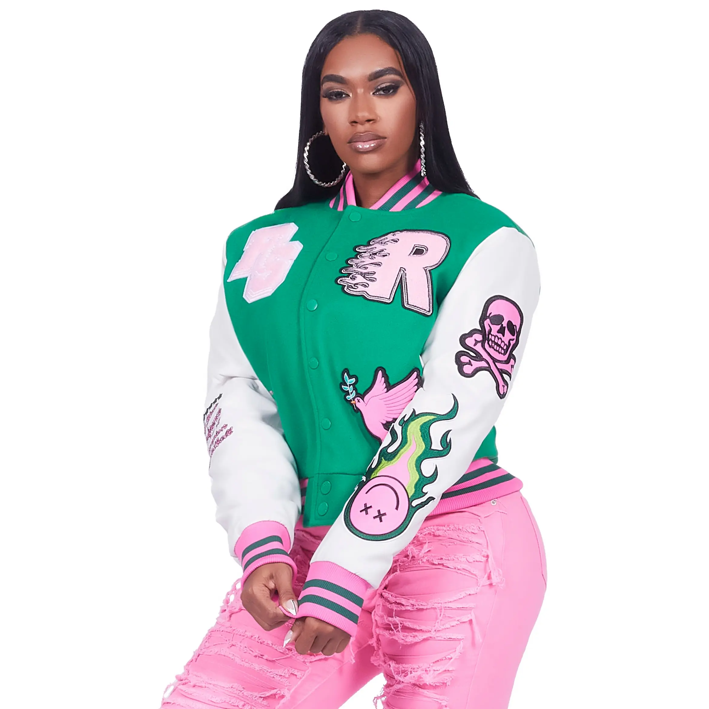 5. Aniya Green Oversized Varsity Jacket