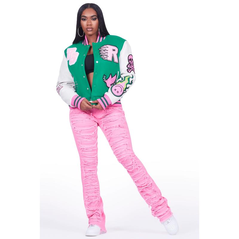 Aniya Green Oversized Varsity Jacket
