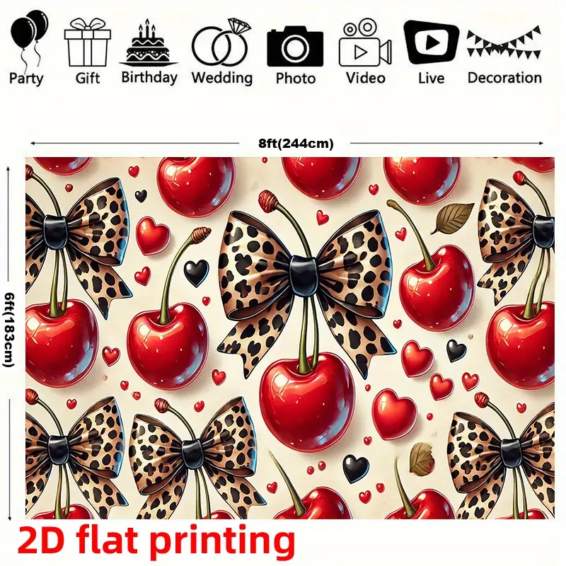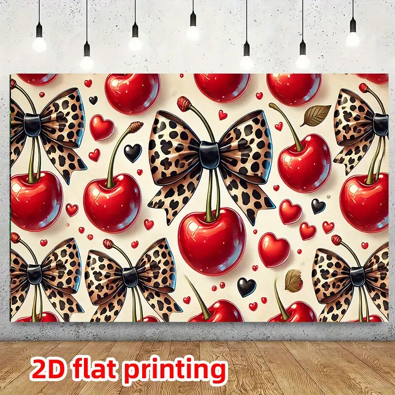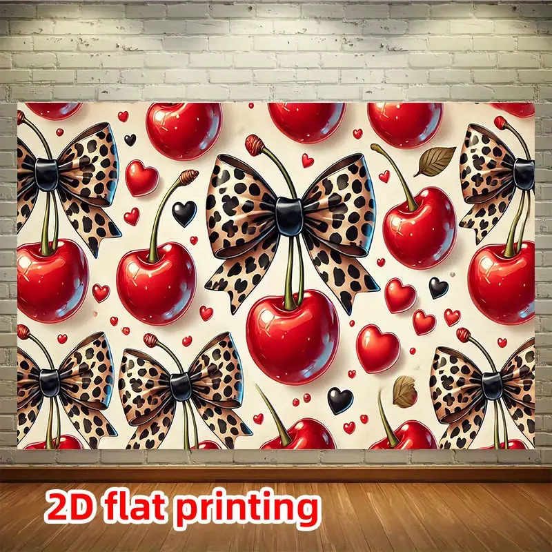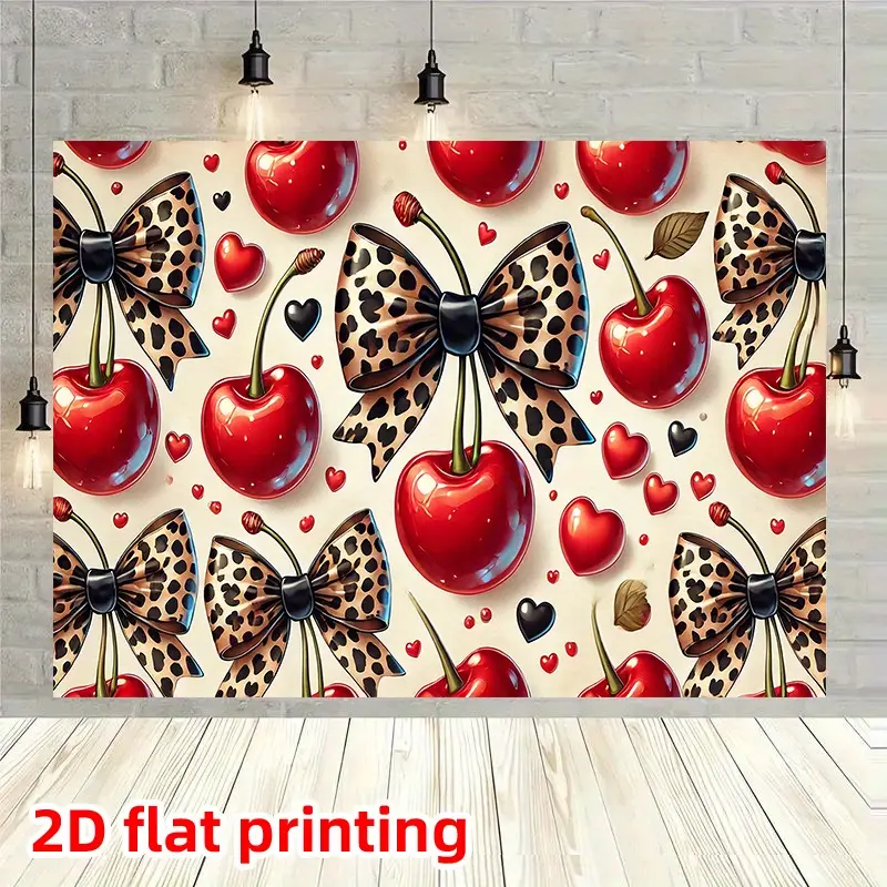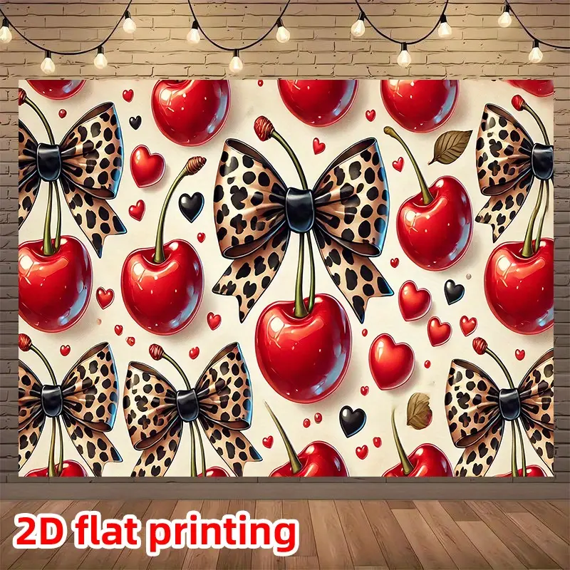 1 oversized wall decoration banner, Party Decorations Banners, featuring a red cherry and bow pattern with red, pink, black, white leopard print design, all-season party backdrop, suitable for home, studio, birthdays, weddings1 oversized wall decoration banner, Party Decorations Banners, featuring a red cherry and bow pattern with red, pink, black, white leopard print design, all-season party backdrop, suitable for home, studio, birthdays, weddings