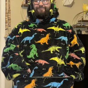 Super comfy warm soft perfect and DINOSAURS 🦕 🦖 FITS PLUS SIZE. I wear a 4X. I also included a few pictures of my adult son and it for the guys.