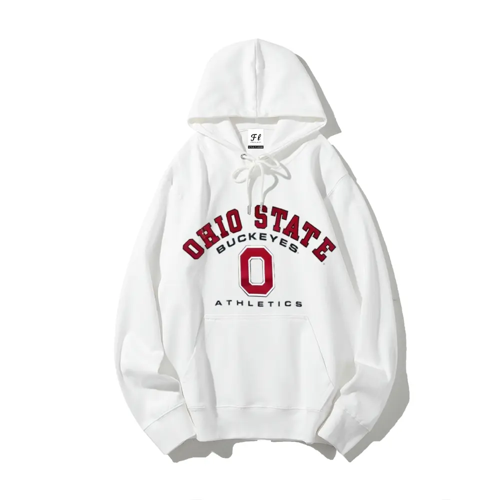 Oversized White Ohio State Buckeyes Athletics Hoodie for Men & Women | Retro Collegiate Graphic Pullover | Soft Cotton Blend College Football Sweatshirt with Kangaroo Pocket | Casual Fit for Game Days, Campus Wear & Buckeye Fans
