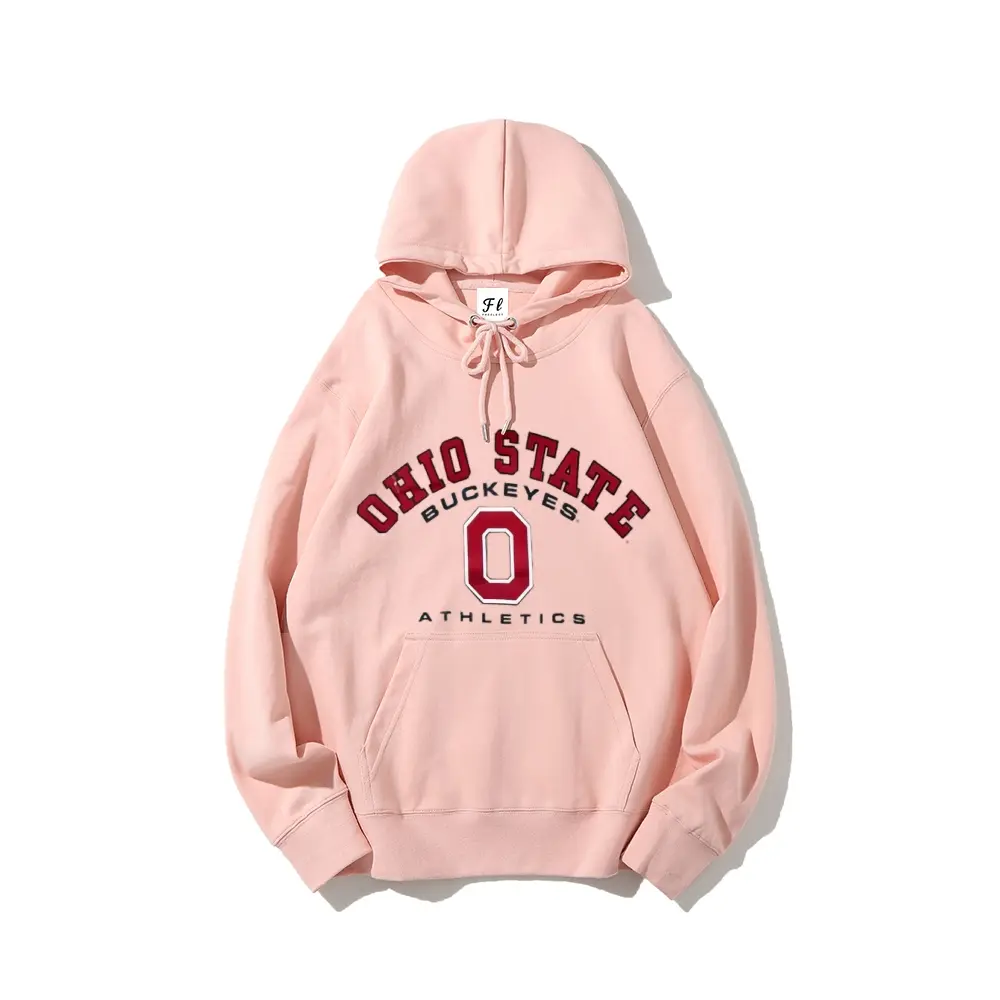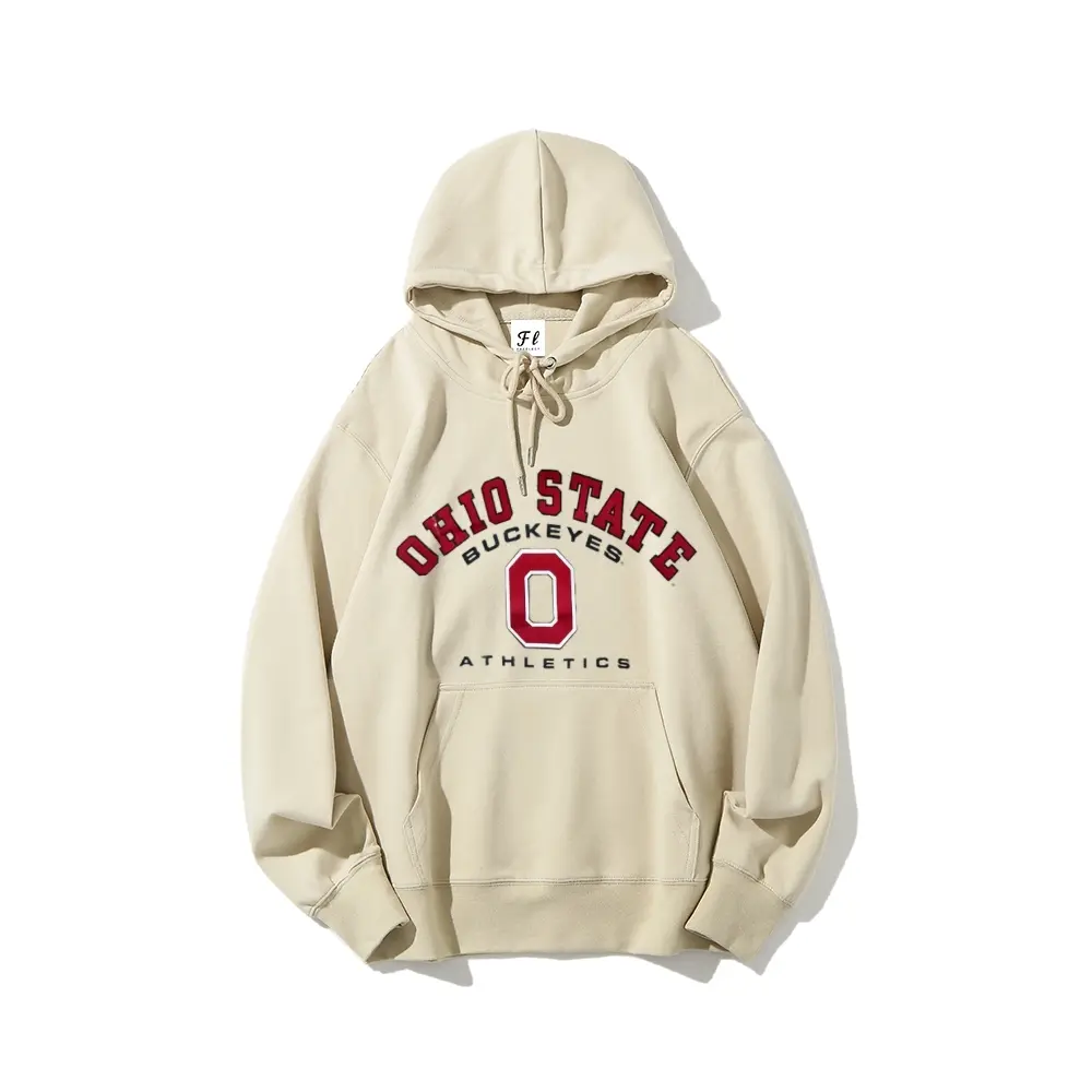 This oversized white Ohio State Buckeyes hoodie is a must-have for every diehard fan. Featuring the iconic retro “OHIO STATE BUCKEYES ATHLETICS” graphic in bold red and black, it’s the perfect way to rep your team on game days, campus walks, or cozy weekends. The soft cotton blend, classic kangaroo pocket, and relaxed fit make it your new go-to for showing Buckeye pride in comfort.
