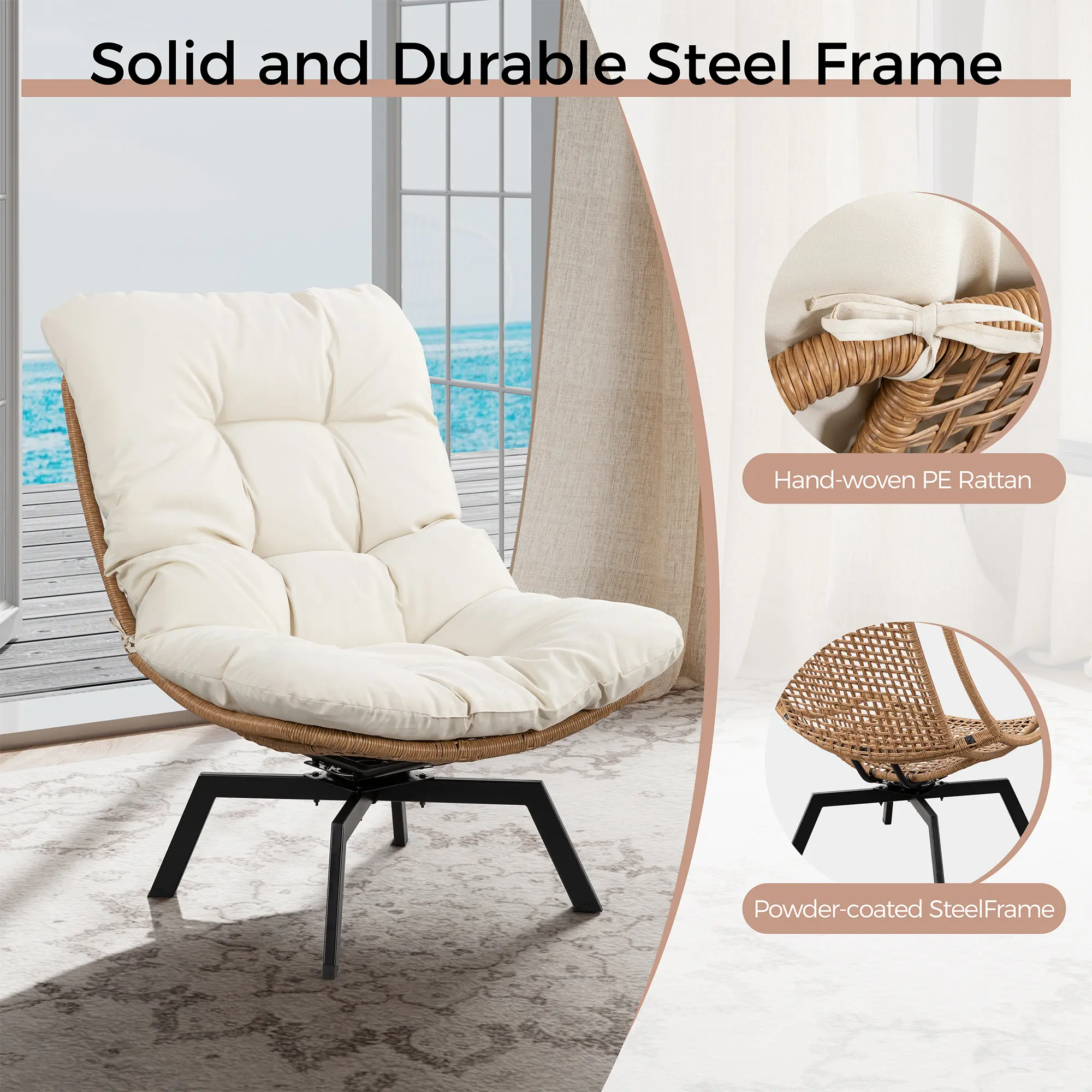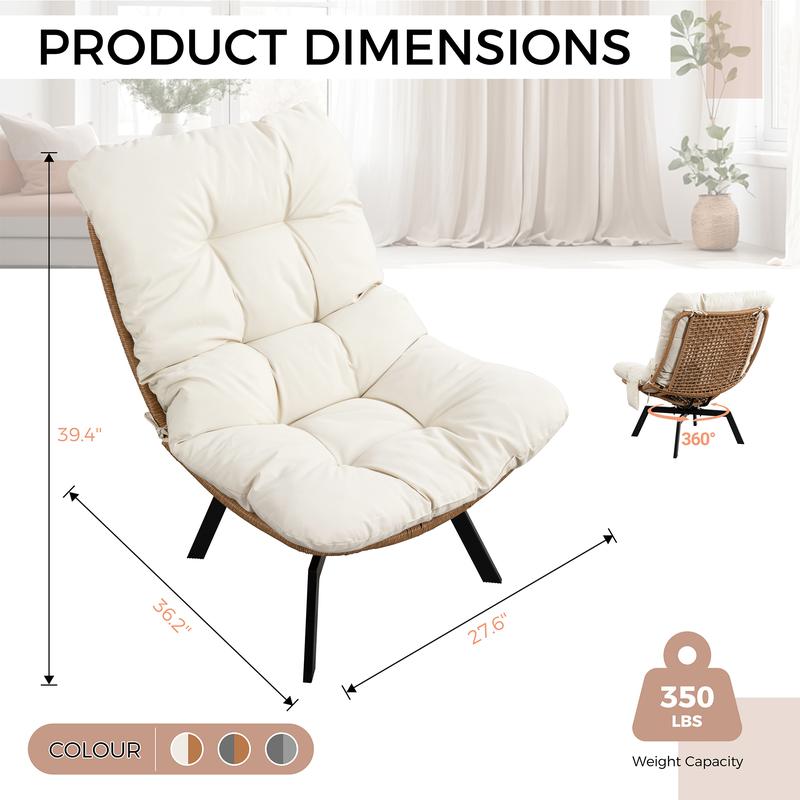 Available in multiple stylish colors to perfectly match your home décor. This chair combines a handcrafted rattan bowl with a natural aesthetic and modern functionality. It comes with clear instructions for quick and tool-free assembly, getting you to relax in no time!