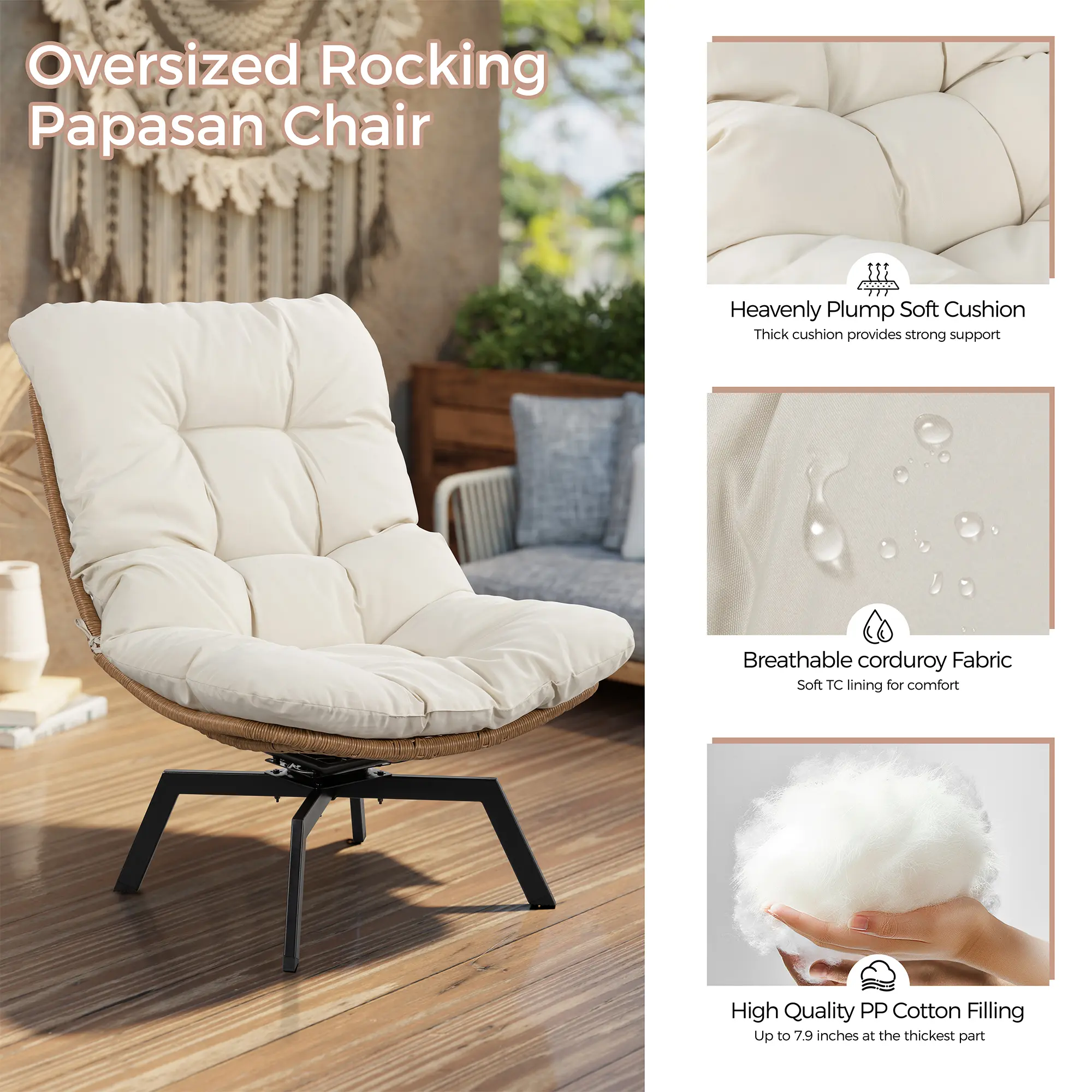 Sink into luxury with the extra-thick cushion filled with high-resiliency foam that maintains its shape over time. The breathable fabric provides enhanced air circulation, keeping you cool in summer and cozy in winter for the perfect sitting experience year-round. Enjoy comfort that adapts to the seasons.