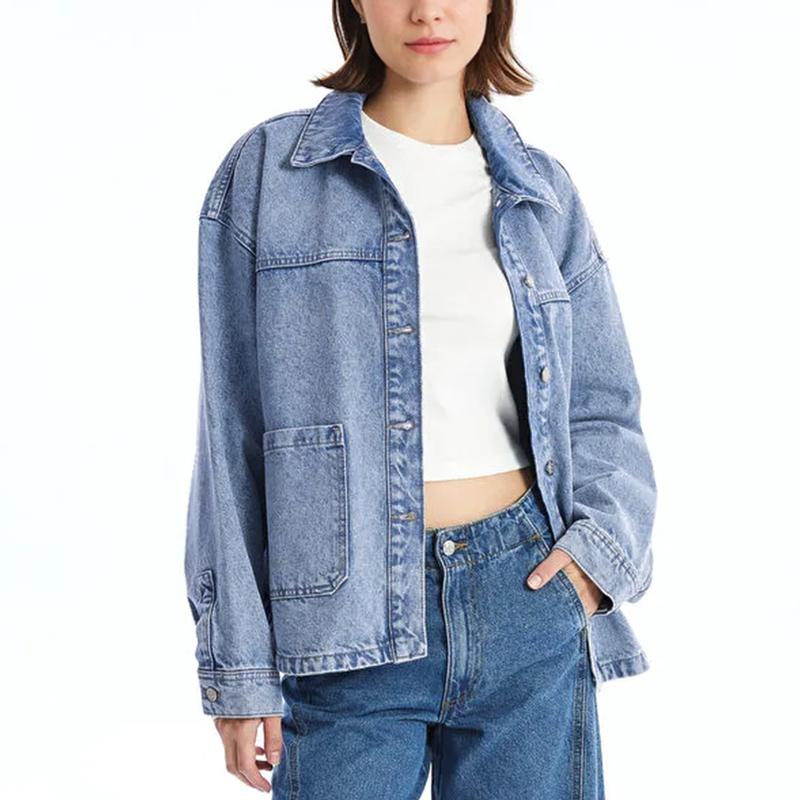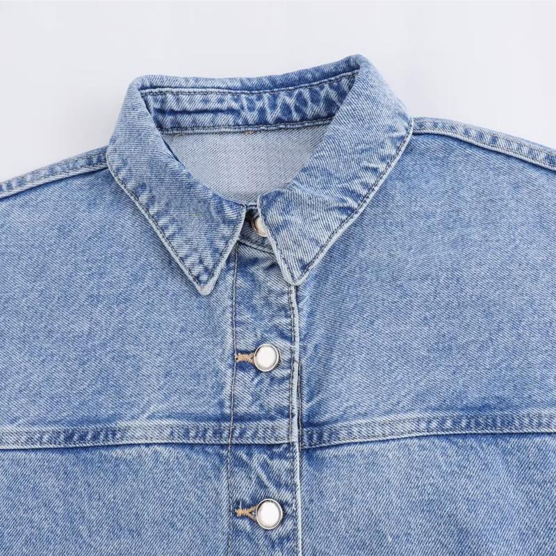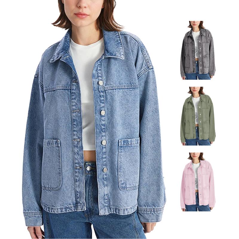 ·Classic Design: A button down casual denim jacket with a collar, shirt collar, and cuffs, loose and stylish, with two pockets at the waist for added layering and classic diversity\