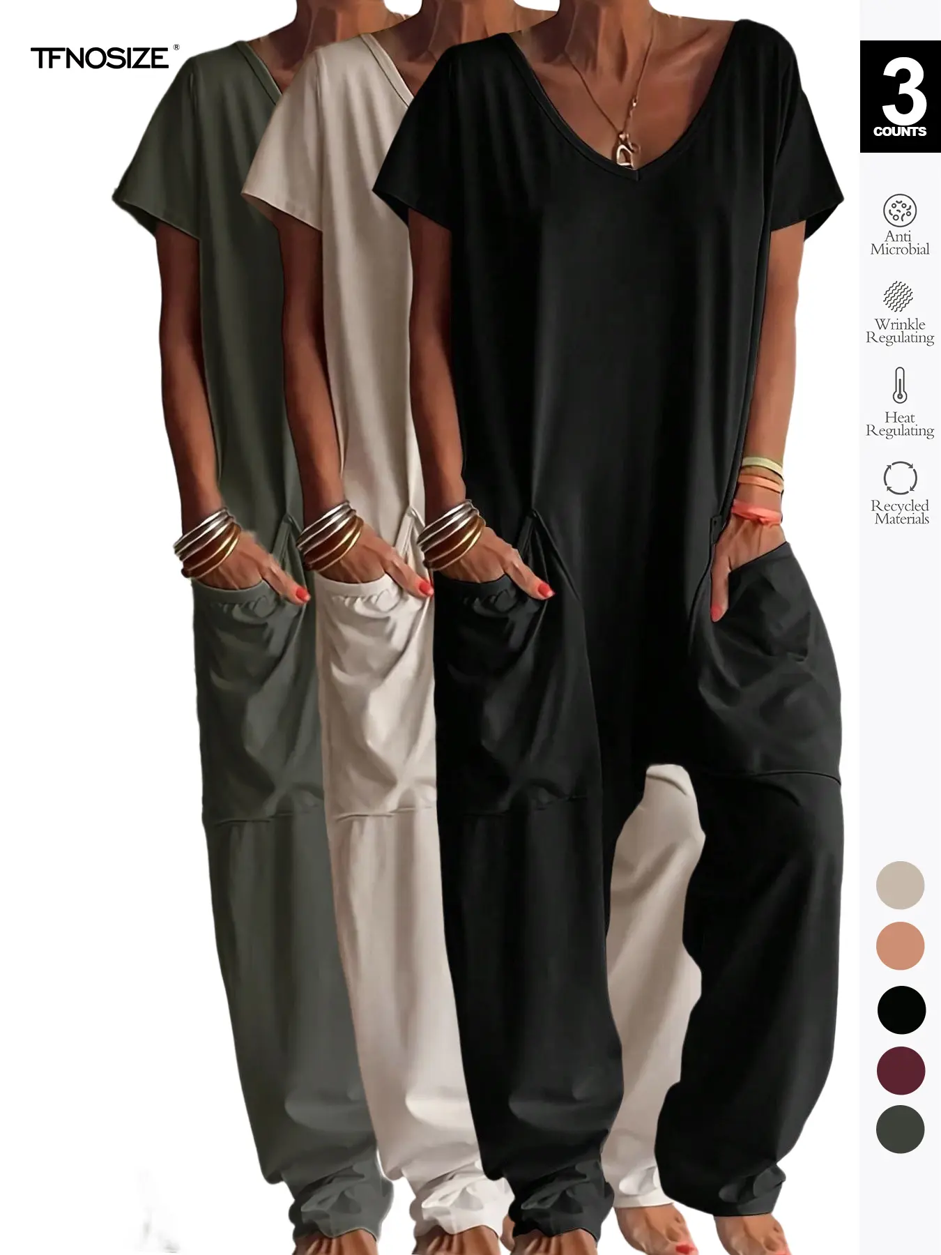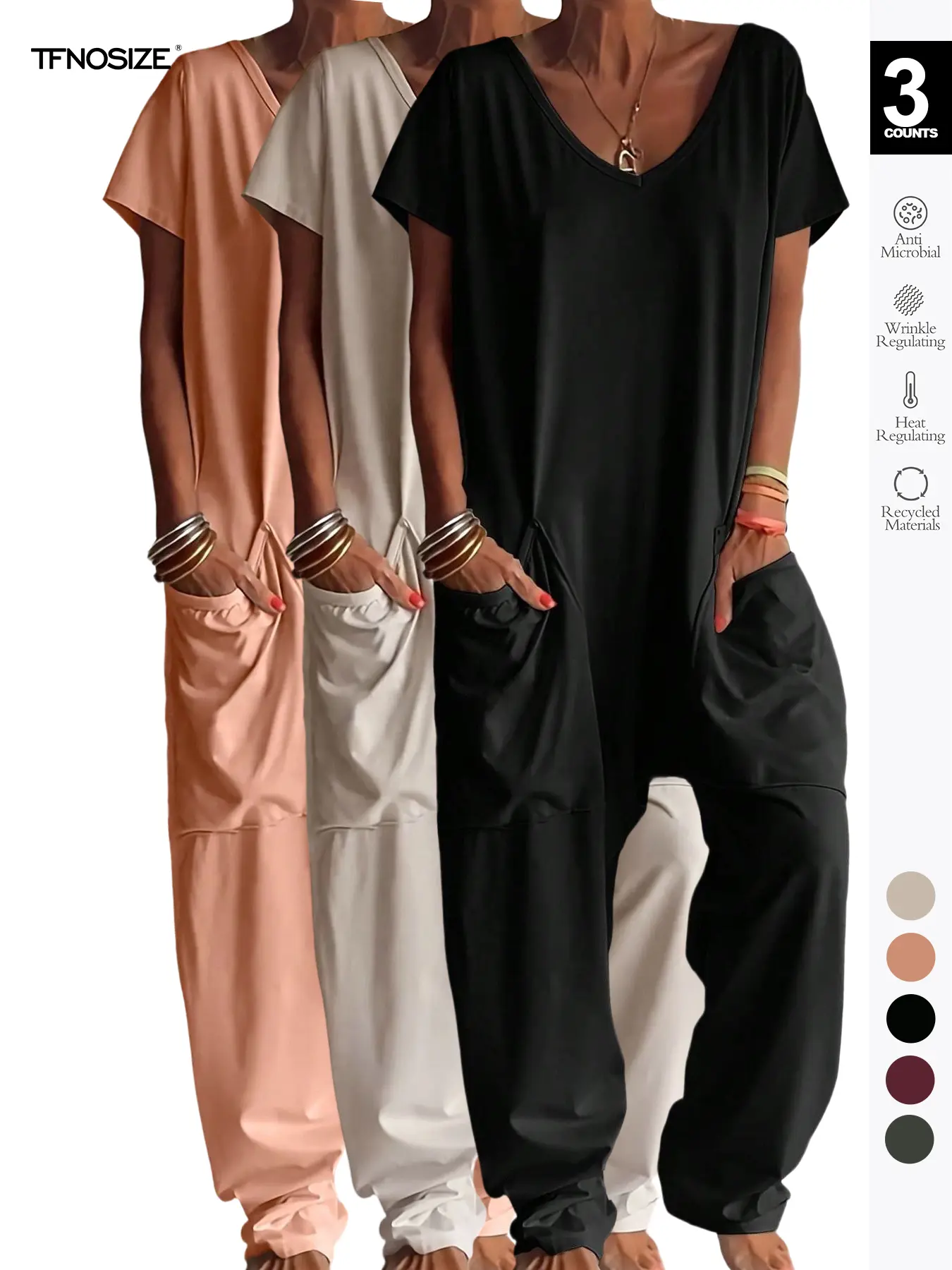 I love my jumpsuit. The fabric is soft and comfortable. Great to wear to work on dress down Fridays, weekend outings or lounge around the house. I will order more.