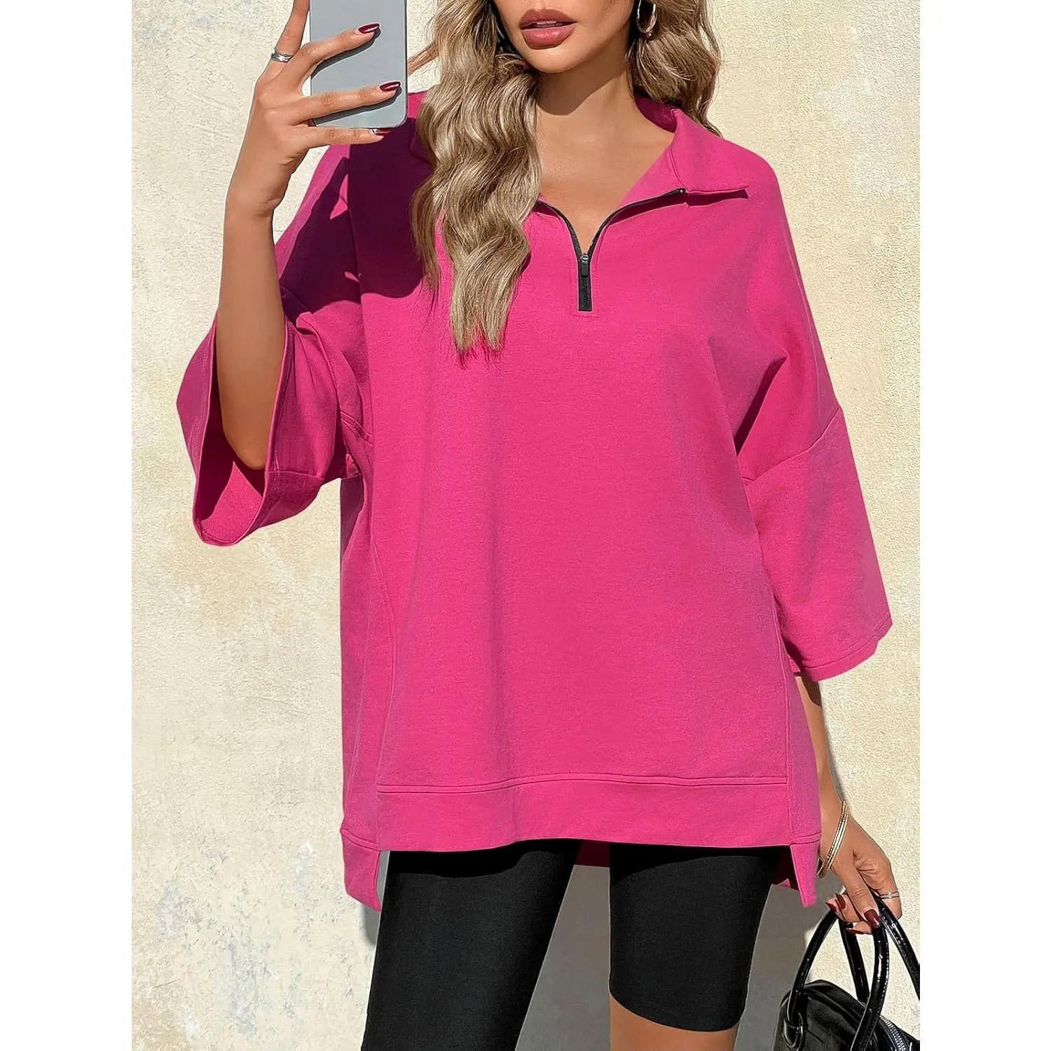 5. Imily Bela Womens Oversized Sweatshirt Casual Zip Up V Neck 3/4 Sleeve High Low Pullover Tunic Tops