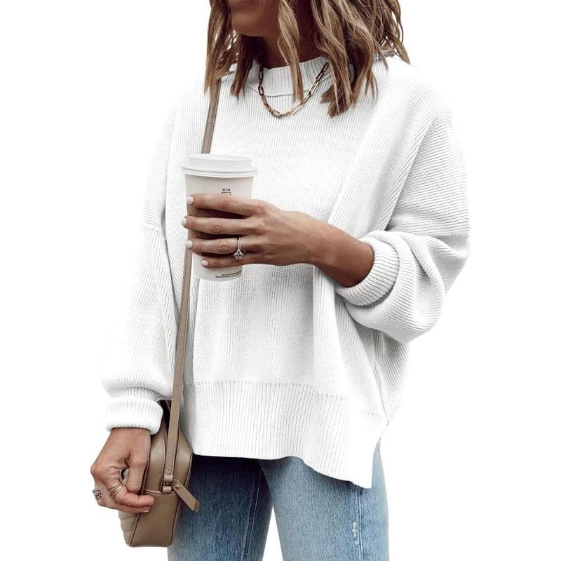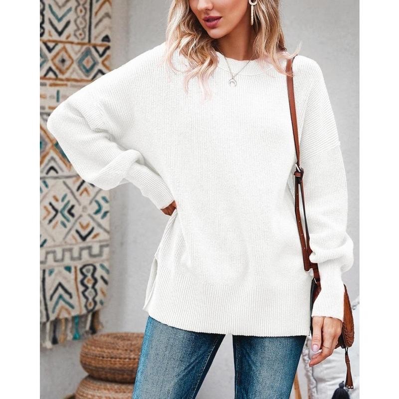 Features -- loose fit ,cute rib texture, side slit, crewneck and surprisingly easy to wear, this chic sweater is sure to add a dash of style and whimsy to every ensemble – even on the dreariest of fall / winter days