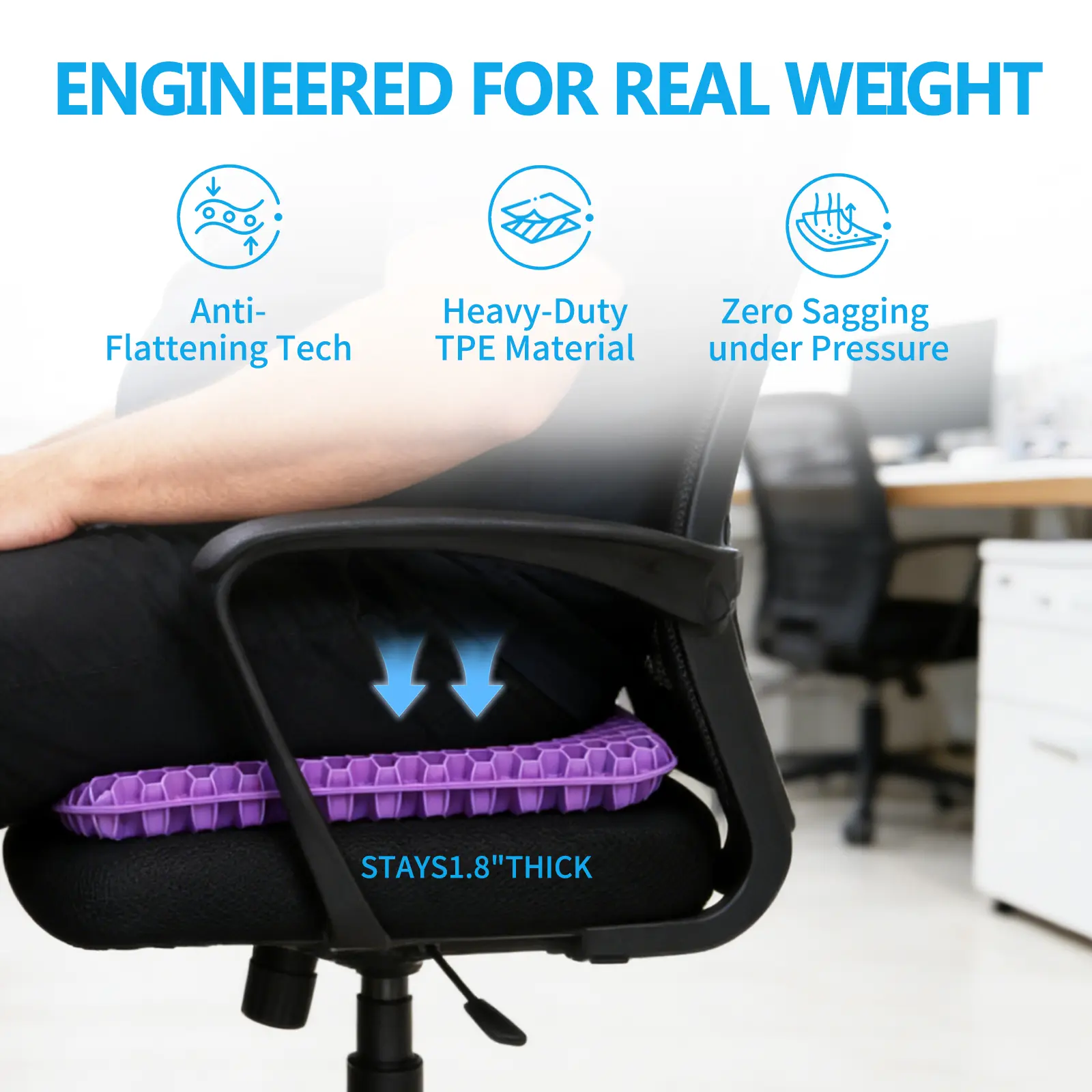 ·ANTI-SLIP & HIGH ELASTICITY Features a high-elastic TPE core and an anti-slip bottom with a breathable mesh cover, ensuring the cushion stays in place while providing a "zero-gravity" feel.