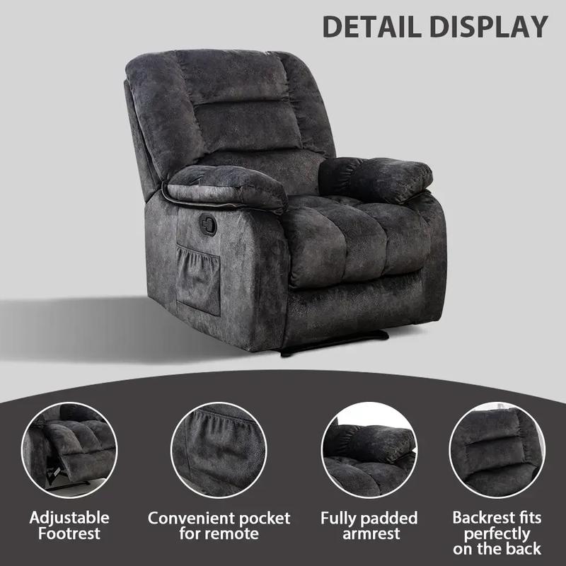 Soft Fabric Upholstery: Upholstered in soft, skin-friendly fabric, this recliner for adults offers a gentle and cozy surface to relax on. The breathable material also ensures comfort even during extended use