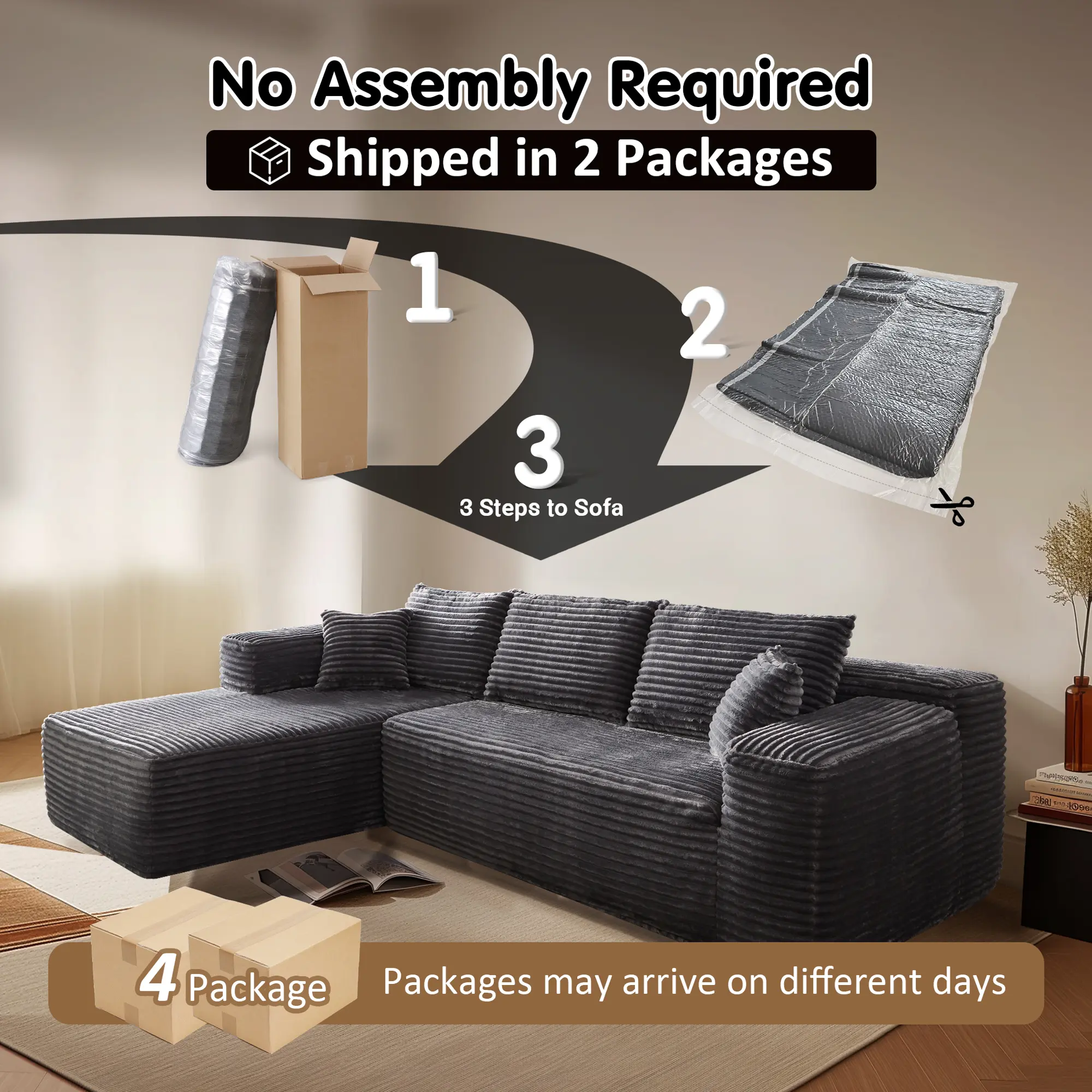 :Perfect for living spaces, apartment, bedrooms, guest quarters, and kiddo's play zones, our floor sofa wears many hats while enticing youngsters to romp on its cushy surface. Its modular blueprint allows breezy navigation through snug corridors and tight entrances, making sure every nook is put to use Product information Items Included Chaise x 1 , Couch x 1 Dimension 104.3" W x 67.7" D x 30" H Item Weight 71.5 Pounds Product Type Sofa Chaise Shape L-Shaped Number of Pieces 2 Seating Capacity 3 Seat Height 14.59" Seat Depth 25.6" Weight Limit 1200 Pounds Fabric Material Plush Corduroy Fabric Fill Material Polyester, Foam, Pocket Spring, Cotton Product Care Spot clean with damp cloth Assembly No Assembly Required