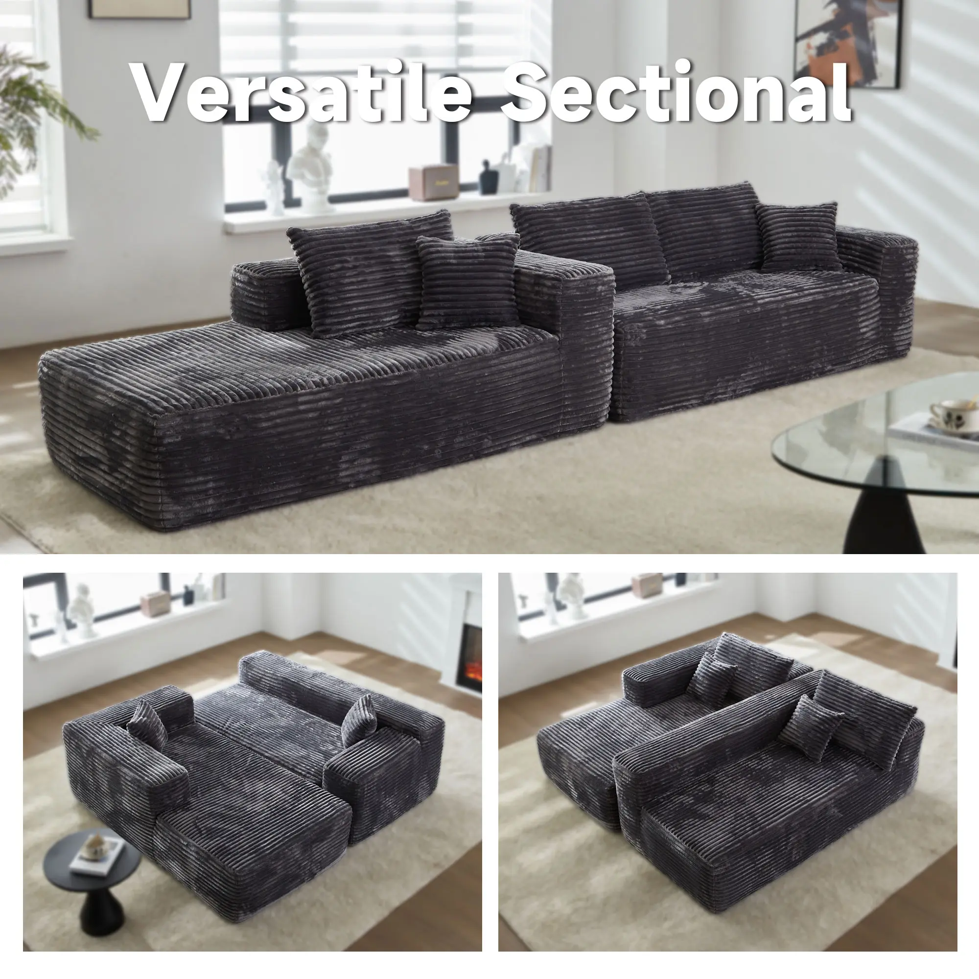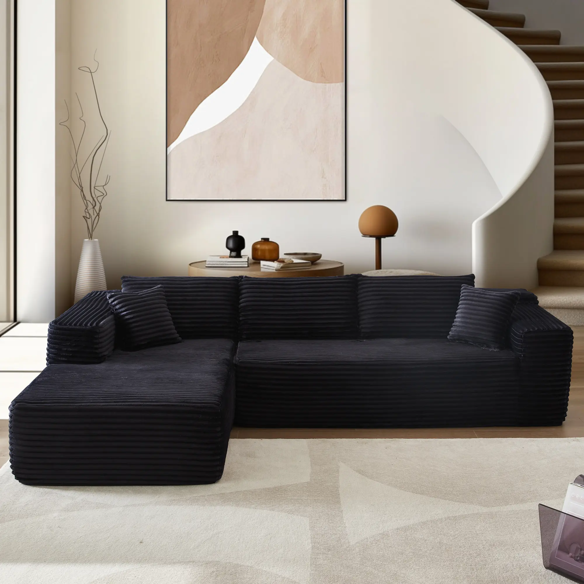 Discover the versatility of our simplified style modular sofa, designed for flexible configurations to fit your needs. This minimalist L-shaped sectional set maximizes space when placed against a wall. Composed of two chic pieces, this living room set invites you to customize your comfort and style.