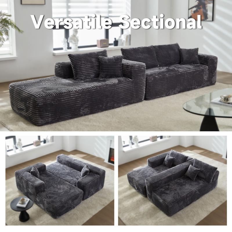 Bask in unparalleled luxury with our interchangeable sofa collection, which embodies a spacious, cloud-like seating sensation. Revel in supreme ease with our pull-out sofa with 51" lounge chaise, meticulously crafted from high resilience foam architecture and coil spring reinforcement.