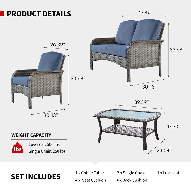 Elevate your patio space with the Ovios Patio Furniture Set, now available in August 2021. This set includes 4 pieces of high-back all-weather PE wicker furniture, designed to provide both style and functionality.
