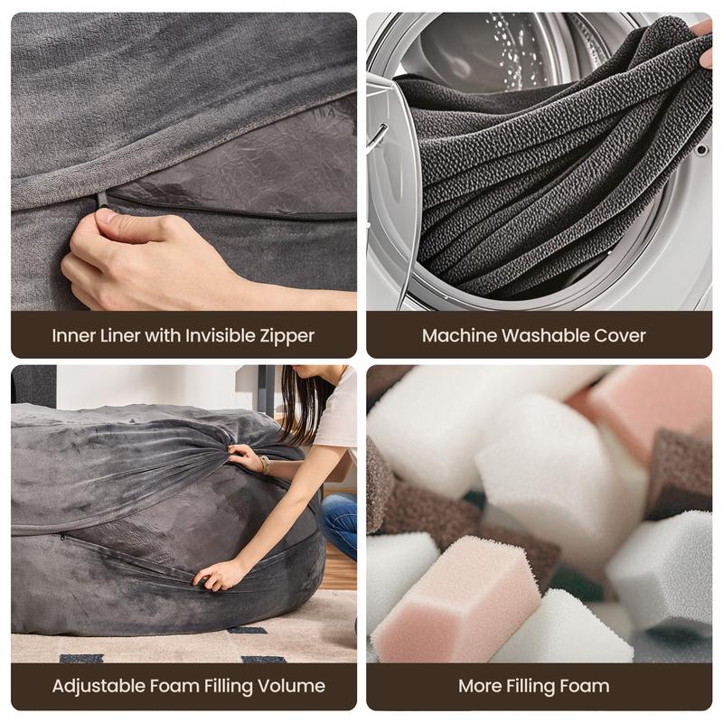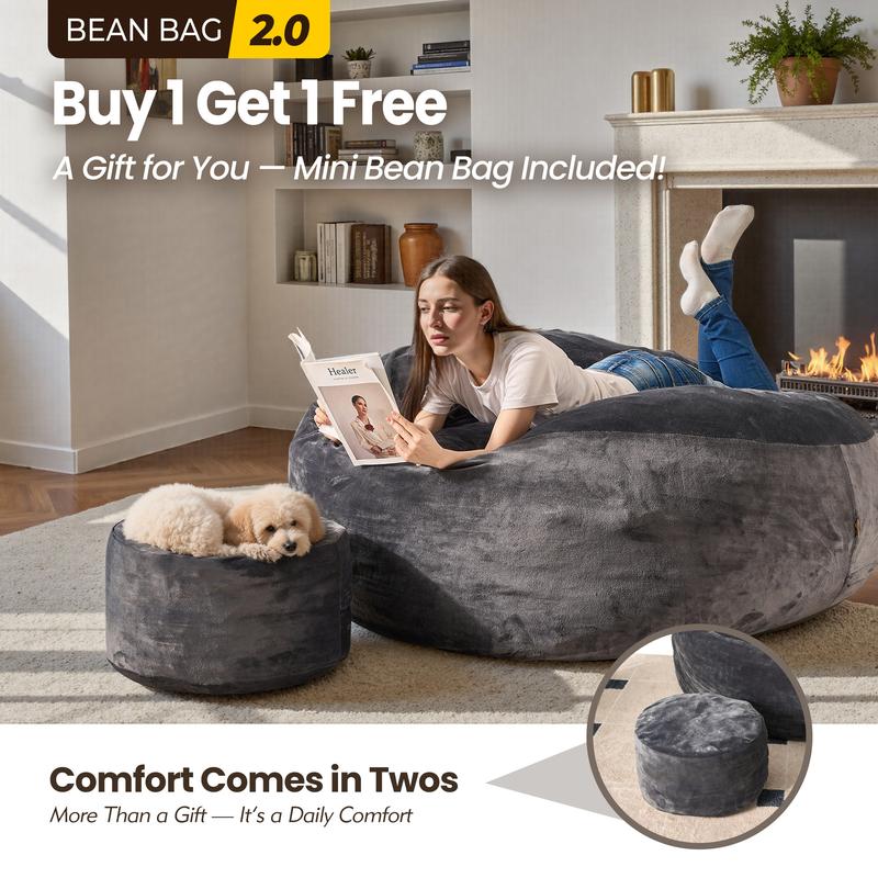 ·Cozy Comfort for All Ages: Ovios 6 Feet Jumbo Bean Bag Lounger with Ottoman – Oversize Plush Bean Bag Sofas with Super Soft Microsuede Cover. XL Memory Foam Stuffed Lounger Couch for Adults, Kids, Couples, Pets. This bean bag is a timeless piece with a modern construct. It's incredibly comfortable and highly functional, making it a perfect addition to any room. Choose vibrant colors to complement any decor.