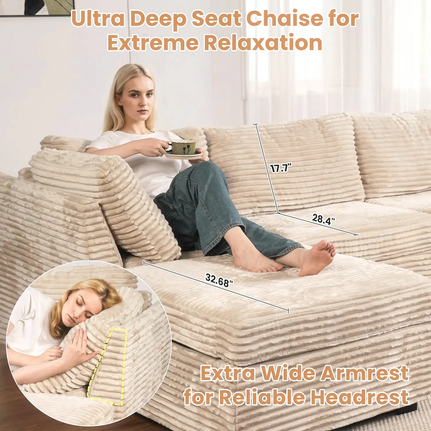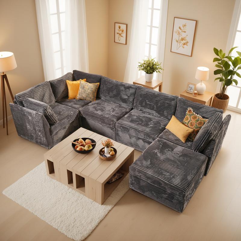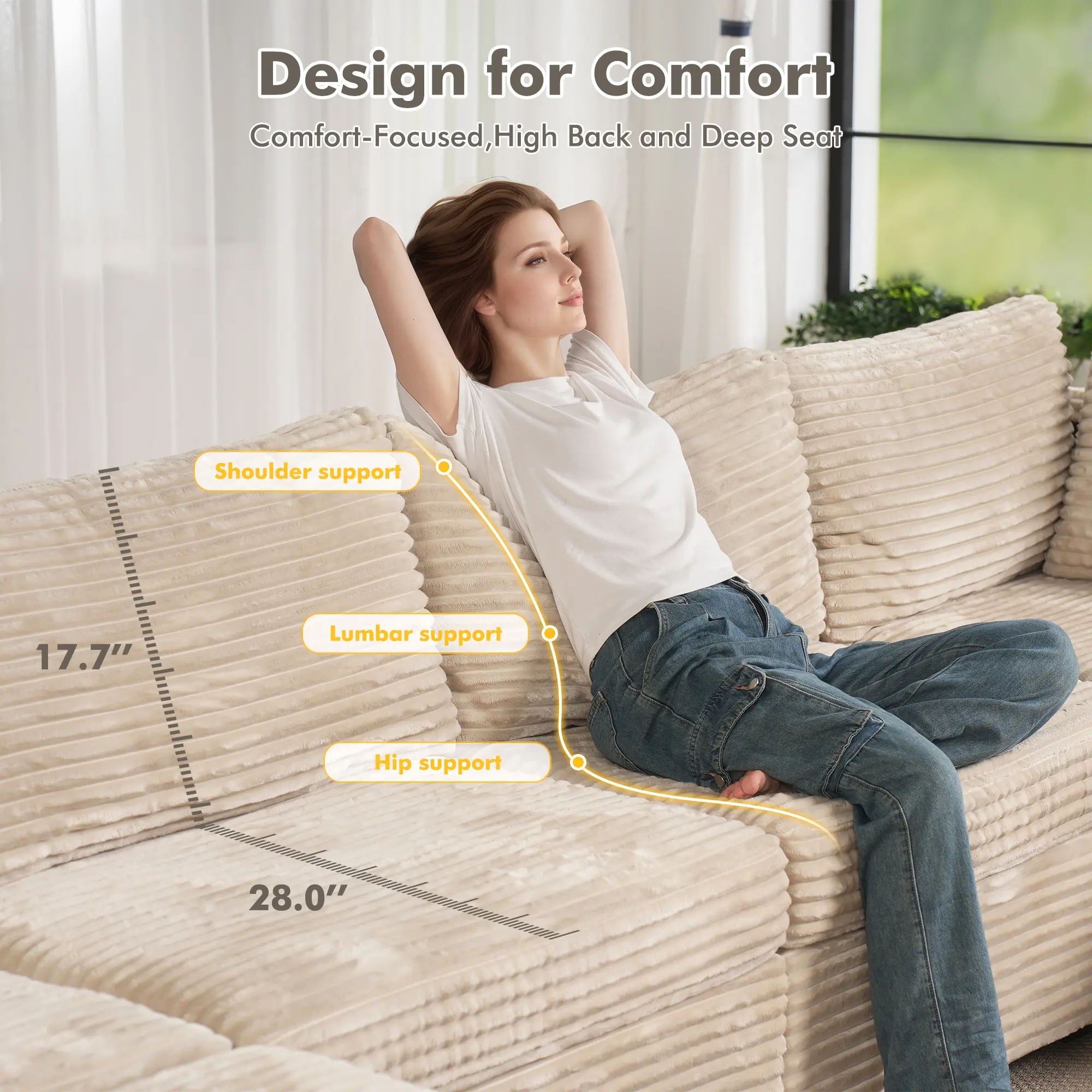 ·Cloud Plush Corduroy: Exquisite and luxurious plush corduroy fabric offers constant softness and comfort, with its unique cloud-like fluffy texture and luster standing out. Don't worry if your pet likes to paw at the sofa, the plush corduroy fabric is anti-scratch and can easily allow you to remove clumps of hair
