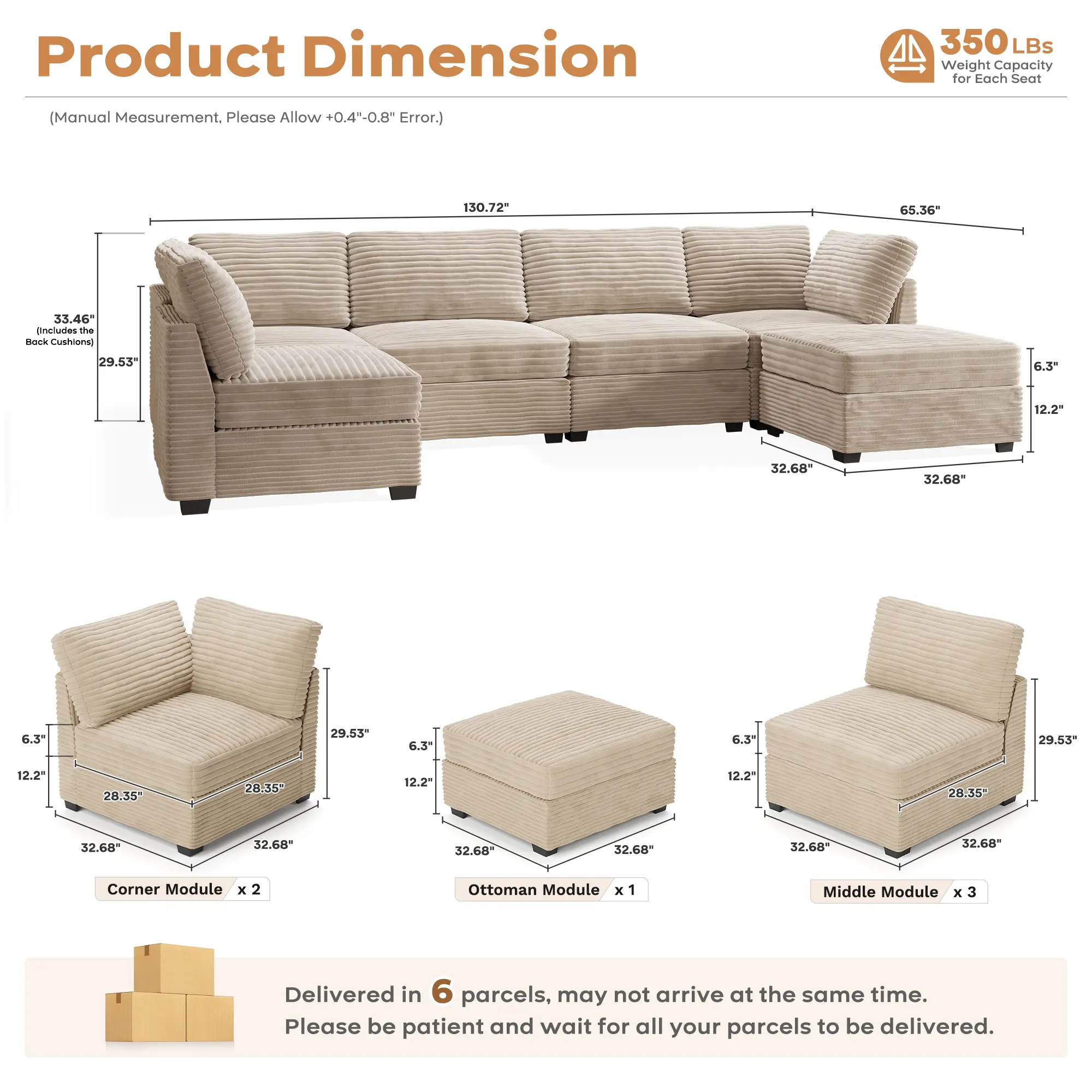 ·Oversized Deep Seat: The convertible reversible couch features 28.4 inch deep seating area, add the ottoman modular, armless modular or corner armrest modular chaise deep sitting can be extended to 61 inches, convert to a sofa bed to easily meet your rest and sleep needs. The deep seat cushion perfectly wraps the body and meets our ergonomic
