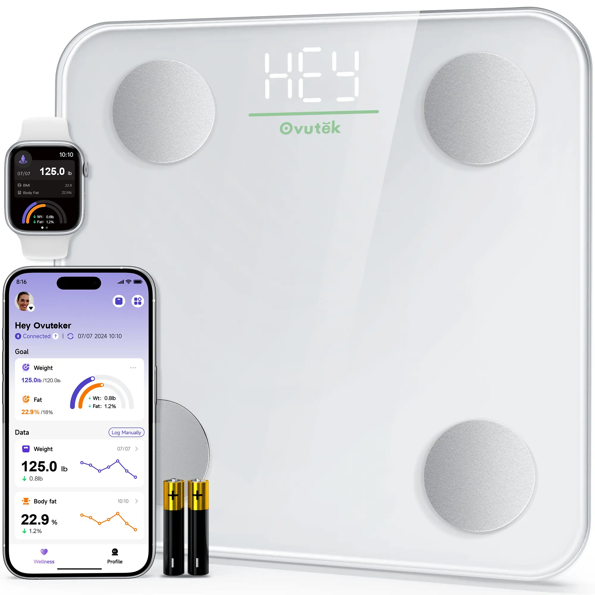 OVUTEK Smart Scale for Body Weight, BMI, and Body Fat Composition, Bluetooth, and Smartphone App Connectivity Weight Scale, Smart High Accuracy Body Fat Scale Digital