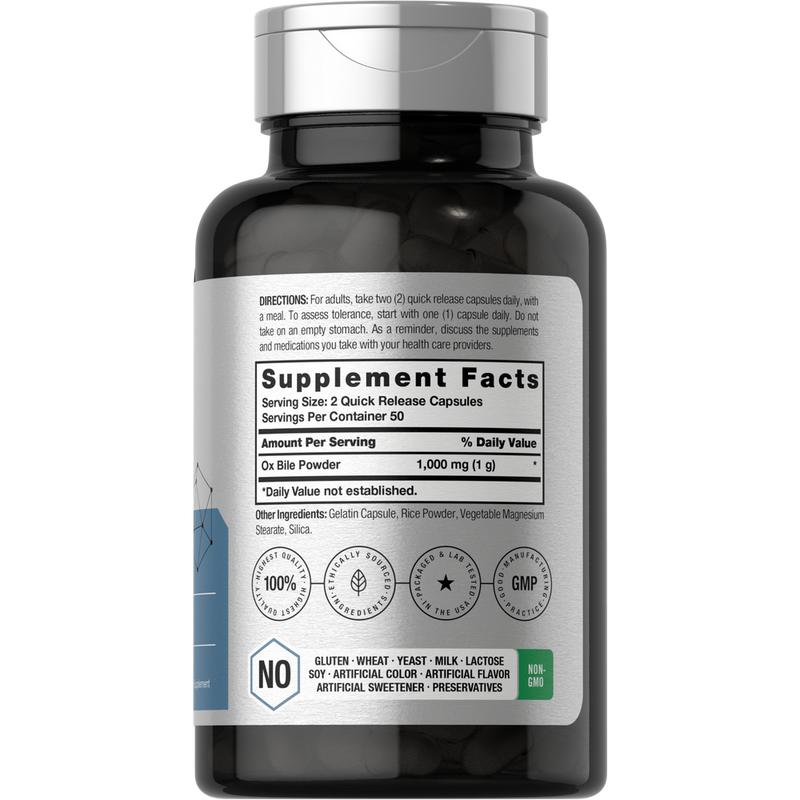 Horbäach Ox Bile Supplement | 1000mg | 100 Capsules | Digestive Enzymes Supplement | Non-GMO & Gluten Free