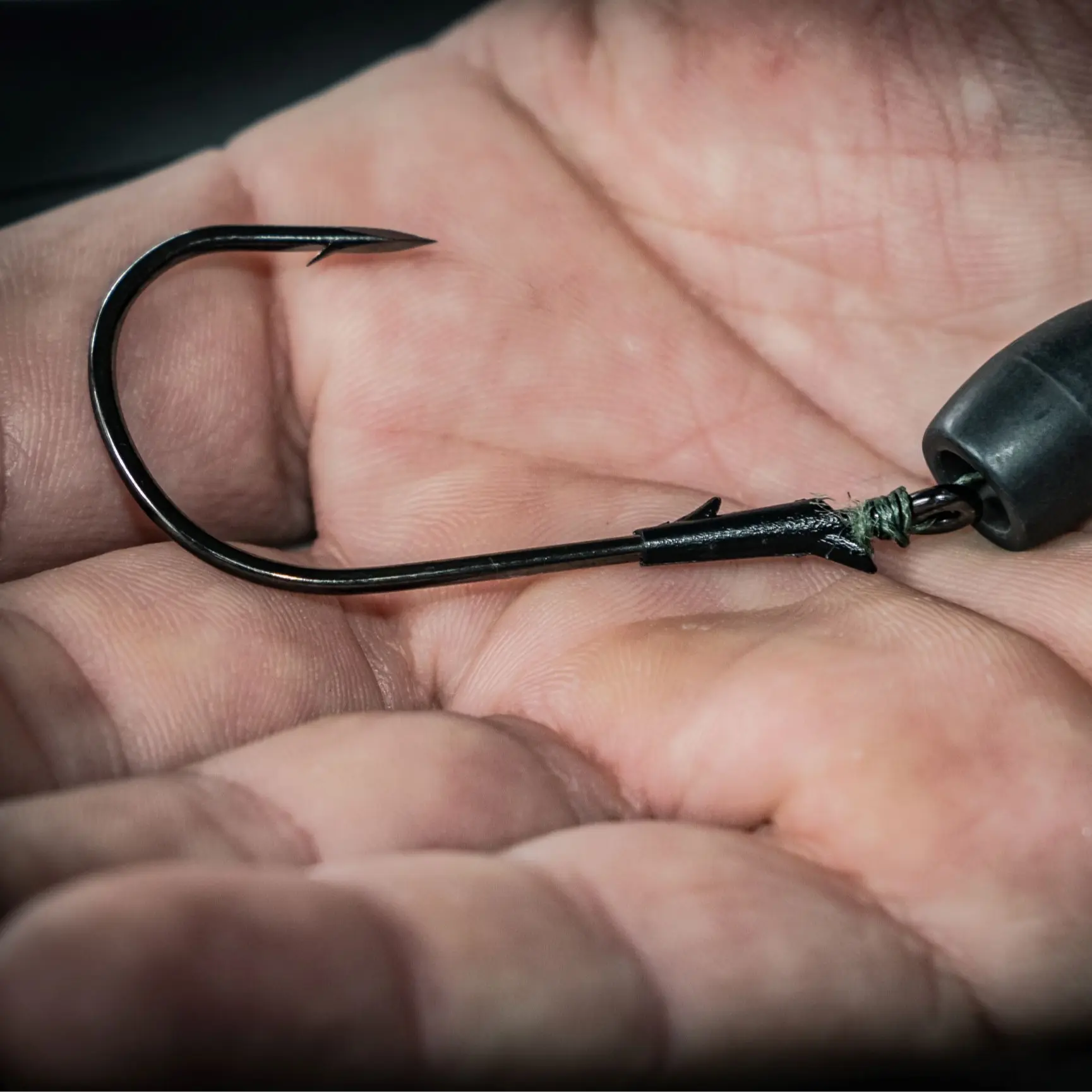 The 6th Sense OX Flipping Hook was designed for flipping & pitching in the heaviest of cover, hence the name, The OX. Forged from a much thicker gauge black nickel wire, the OX Flipping Hook has the strength to rip fish out of dense cover without straightening. Equipped with a dual-barbed bait keeper that will not only extend the life of your plastic, but also maintains a straight and consistent presentation, flip after flip. The OX's welded line eye is a critical feature for tying on braided line and specialty snell knots, which makes this a must have hook for your heavy cover flipping arsenal. Available in five sizes. (5pk)