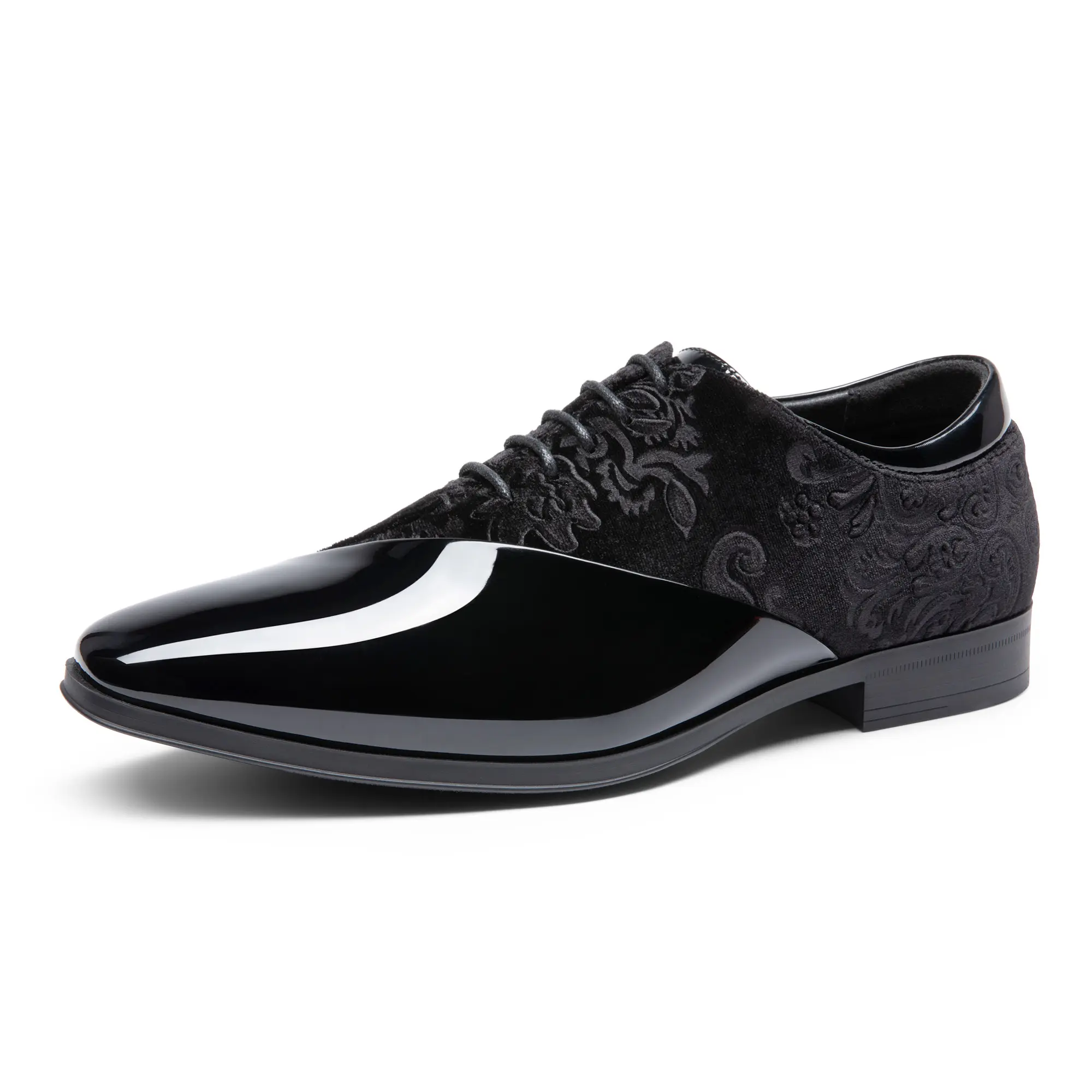 ·Polished & Refined: With high craftsmanship, these men's Oxfords feature a spliced upper that combines glossy patent synthetic leather and high-quality velvet, offering a luxurious texture while adding a soft and elegant touch to your overall ensemble.