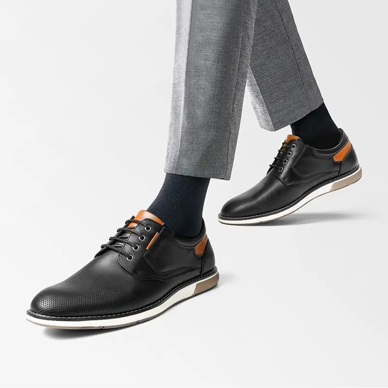 Soft & Ventilated Upper: These men's wide width casual Oxford shoes feature premium synthetic leather with trendy perforated detail for ultimate breathability and style.