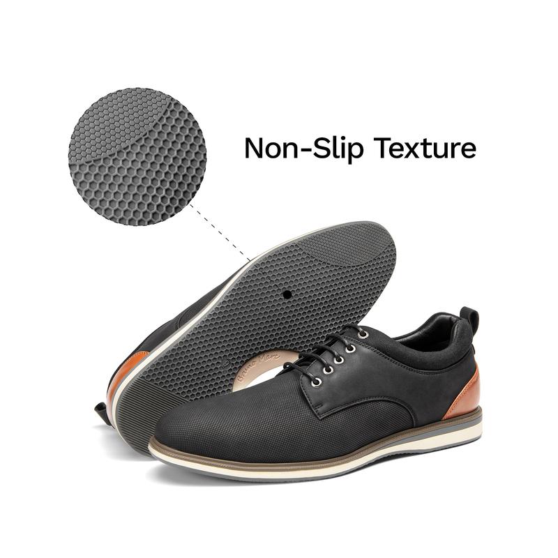 Bruno Marc is all about keeping up with the trends. That is exactly how we'd describe our business casual oxford shoes. A tend setting favorite. Take comfort in a padded collar, tongue, and a new age design. Combining the elegant fashion of oxfords with the comfortable feel of sneakers. Catch up to modern looks with a supportive TPR outsole to keep things stable. An expressive style for an impressive look.