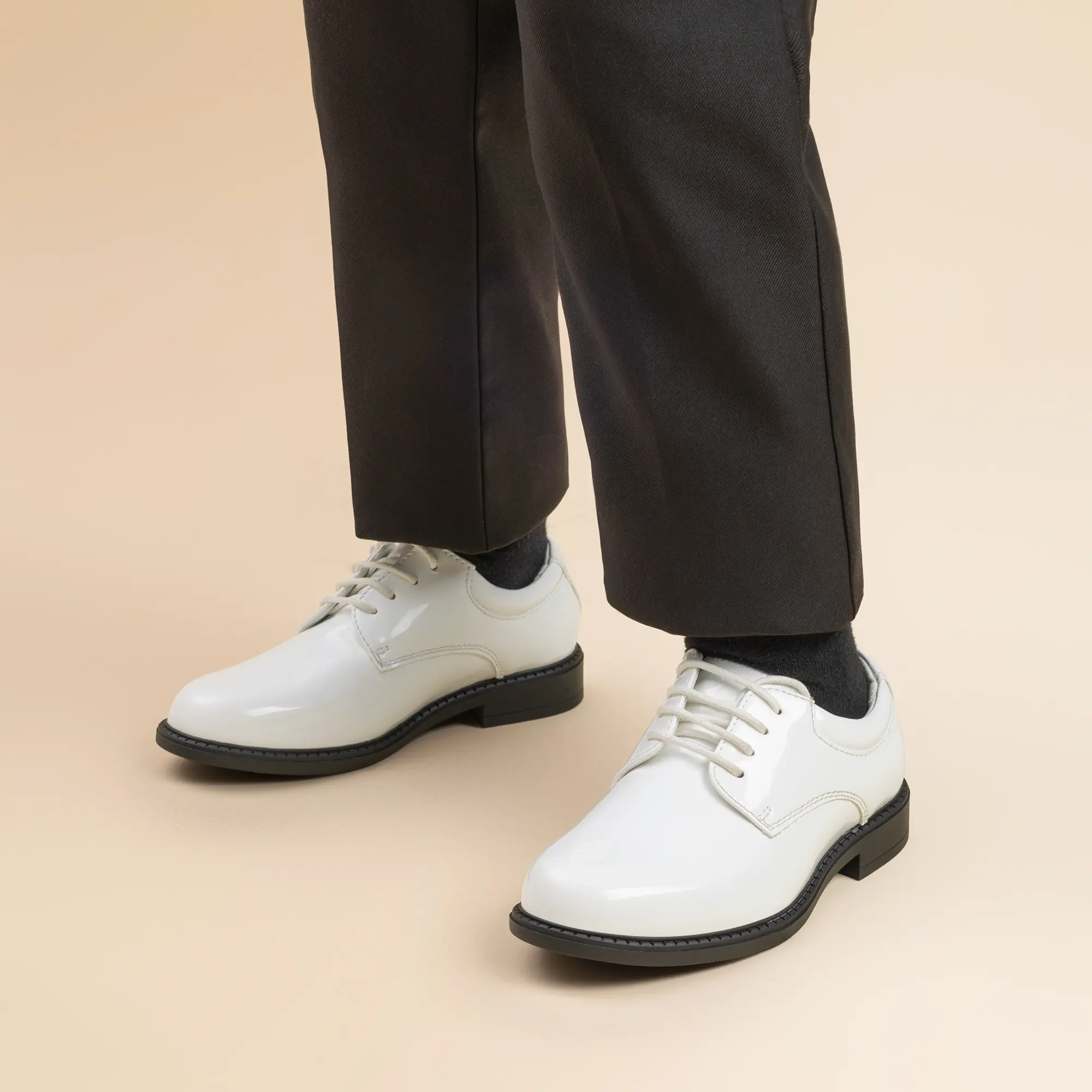 ·CLEANING EASILY: Finished with smooth PU vamp, these boy’s dress shoes are splash-resistant and easy to clean.