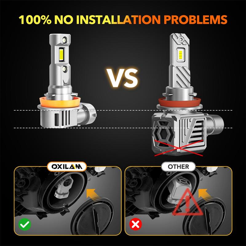 ·ăReal 1:1 Size & Easy Installationă: OXILAM bulb features a true 1:1 design that perfectly matches original halogen bulb specifications. With our revolutionary tool-free installation system, you can complete the replacement in just 5 minutes. Unlike other LED bulbs, it eliminates bulky external drivers and oversized bases, maintaining full compatibility with stock dust covers for guaranteed 100% plug-and-play installation with zero hassle.