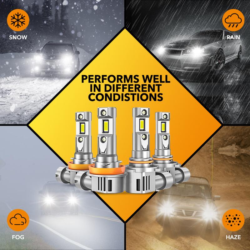·ăOptimal Light Focusă:360° shadow-free focused lighting. The upgraded optical system effectively eliminates glare to prevent disturbing oncoming traffic, while completely removing dark zones and shadows, delivering wider illumination coverage and longer visibility range than standard bulbs.