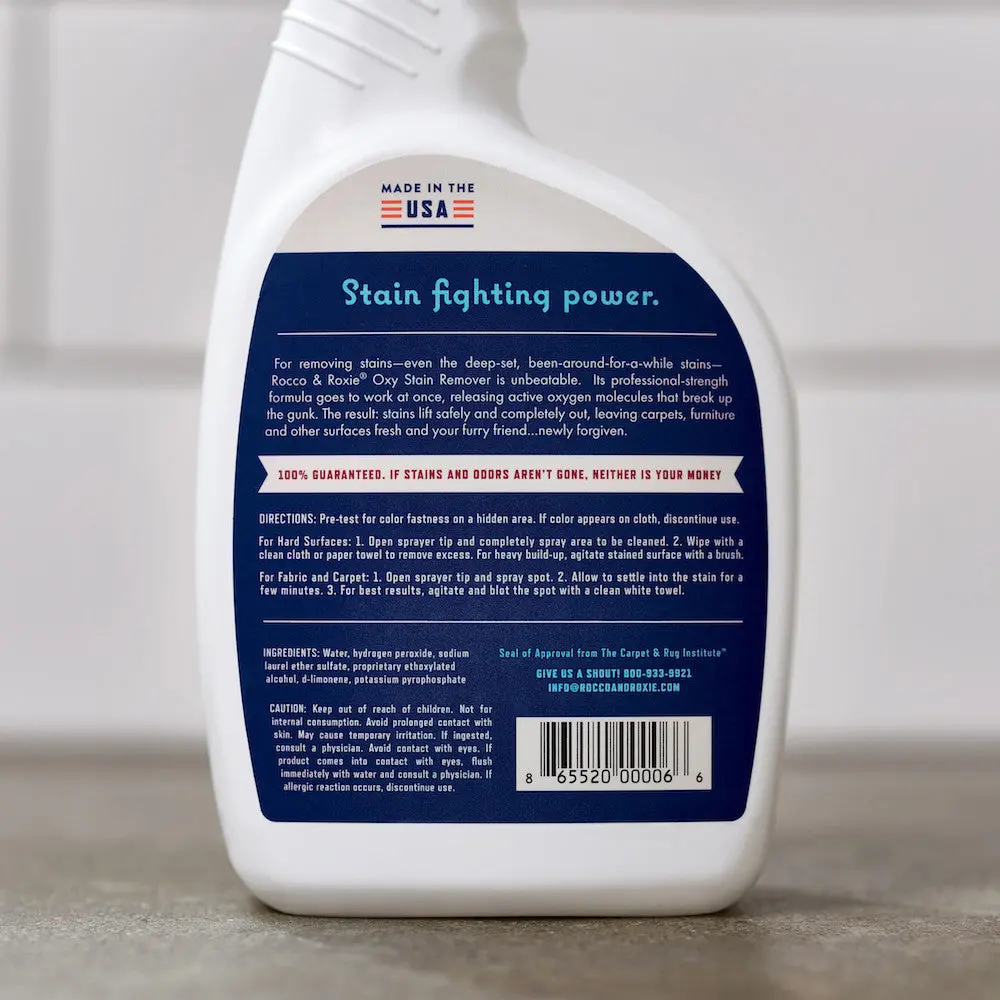 So, I wanted to make sure I had a good chance to see how this product works in the middle of my move. I used this on my carpets where I found urine stains from my Chihuahua that I didn't know were even there! Much to my delight, this product attacked those urine stains immediately and with very little effort on my part, it completely removed the urine stains that I had no idea how long we're there for. And left a pleasant odor behind/ during. This product actually works! I also sprayed it on some staind the little old Chihuahua left in my couch from licking a couple areas in the pillows of the light grey couch (porphyrin staining) sprayed this onto the stains and it removed the staining and all the rest of the dirt and grime that had accumulated there over the past couple years. Now I wish I could spray my whole couch with this and make it look brand new again! Yes, I was given this product free for my honest review, but this product TRULY and HONESTLY DOES WORK MIRACULOUSLY on pet stains. Oh yeah, I have 3 cats and two dogs and I've used it on hairballs on the carpet, #2 on a rug and old urine in the carpet. I will ABSOLUTELY PAY full price for this item and look for it in stores. Anyone with kids and or pets NEEDS THIS Roxy Oxy Stain Remover because IT TRULY WORKS WONDERS! I'm surprised, it's a stain remover that actually works, amazing and easy to use!