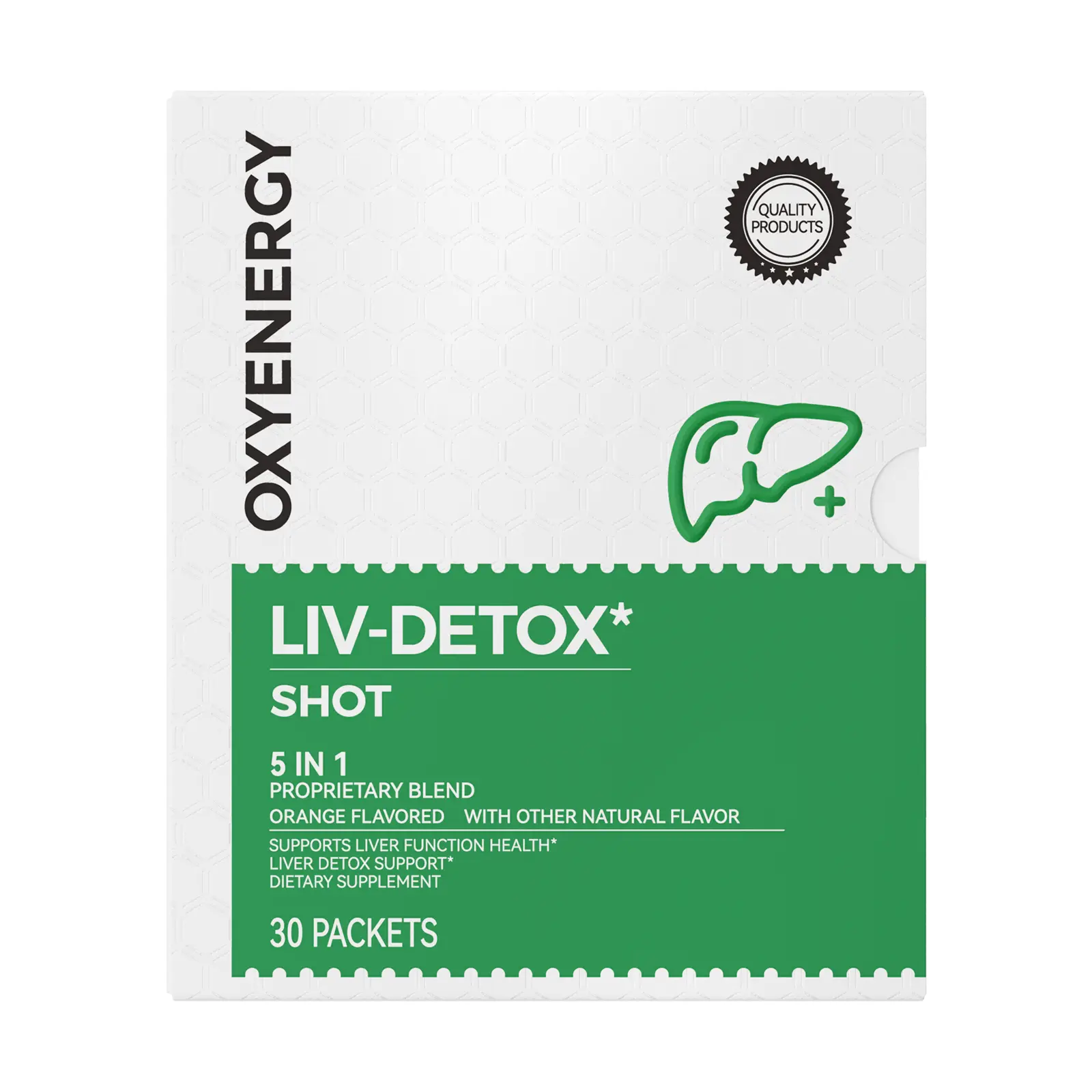 OXYENERGY LIVER-DETOX Shot is a premium dietary supplement designed to support normal liver function as part of a healthy lifestyle. It features a proprietary blend of plant-based ingredients, including turmeric, milk thistle, ginger, and dandelion, combined with a refreshing orange flavor.