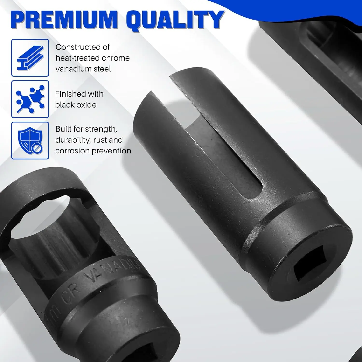 Premium Quality: Constructed of heat-treated chrome vanadium steel with black oxide, this oxygen sensor remover set is built for strength, durability, rust and corrosion prevention.