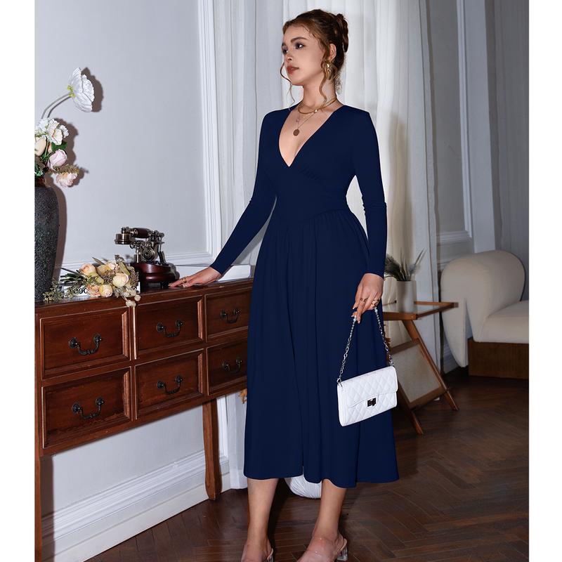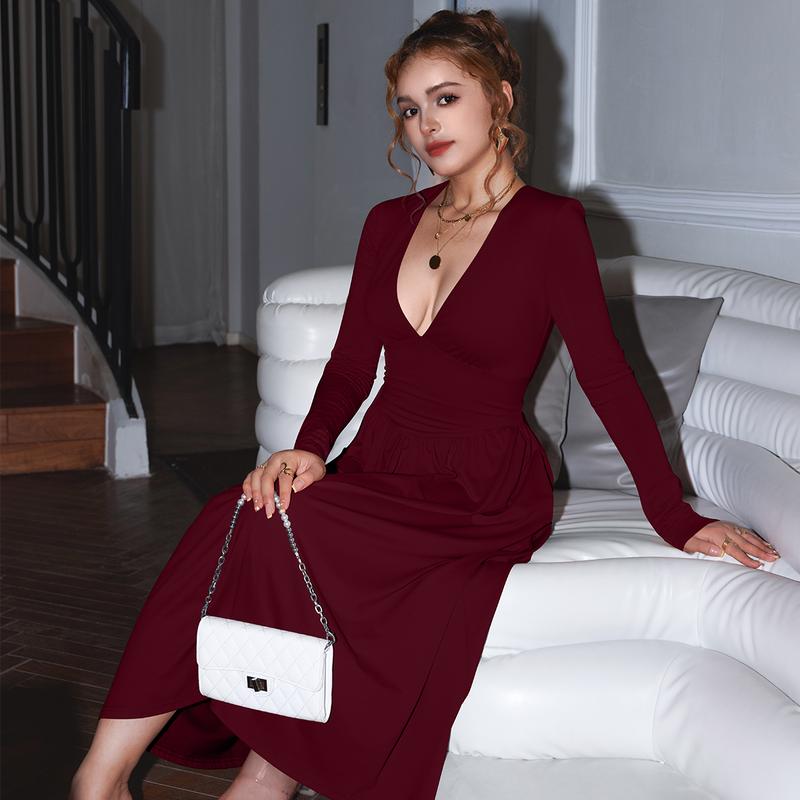 This is a heavy quality dress but has a deep v neck. I personally love it but I don’t like how much chest it shows.