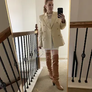 Fun lil dress to wear under an oversized blazer. Very comfy and a good length for tall boots in the fall.