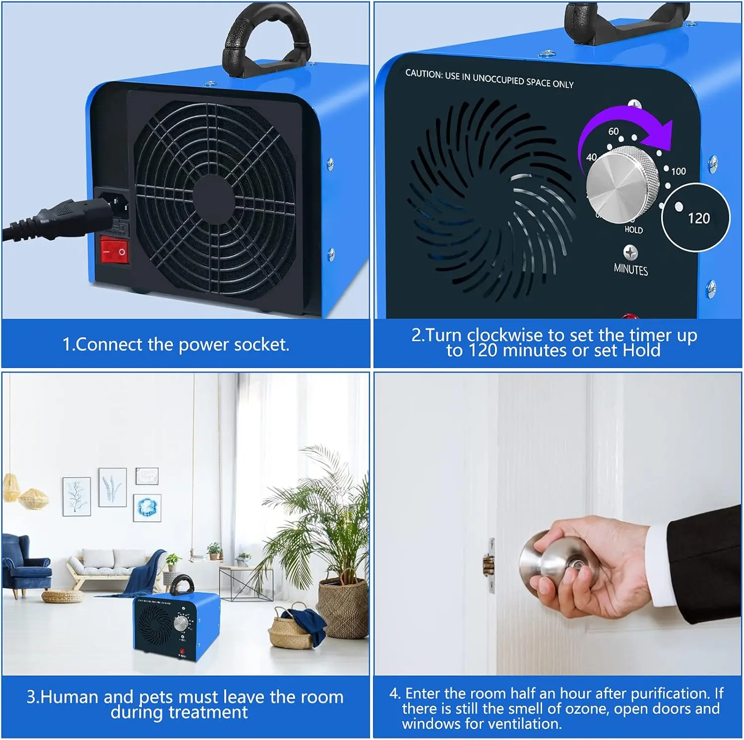 Ozone Generator Output 160,000mg / h of ozone, O3 Air Purifier which effectively eliminate any unpleasant smells like odor, pet odor, basement odor, odor, decoration odor, fumes and other airborne odors.