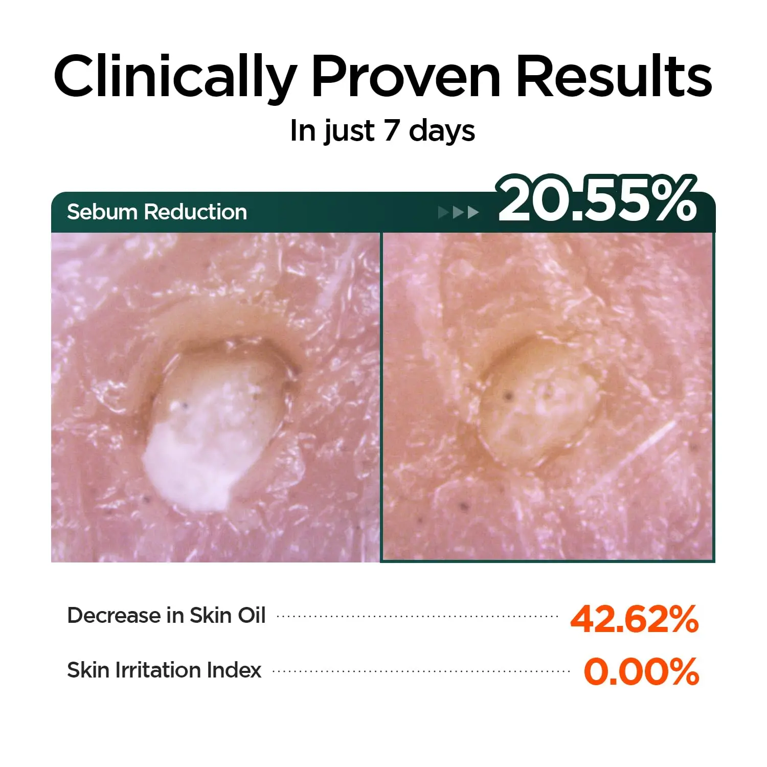 🔬 CLINICALLY PROVEN RESULTS - Clinical trials show a 20.55% reduction in sebum and a 42.62% decrease in oil, while being gentle and non-irritating.