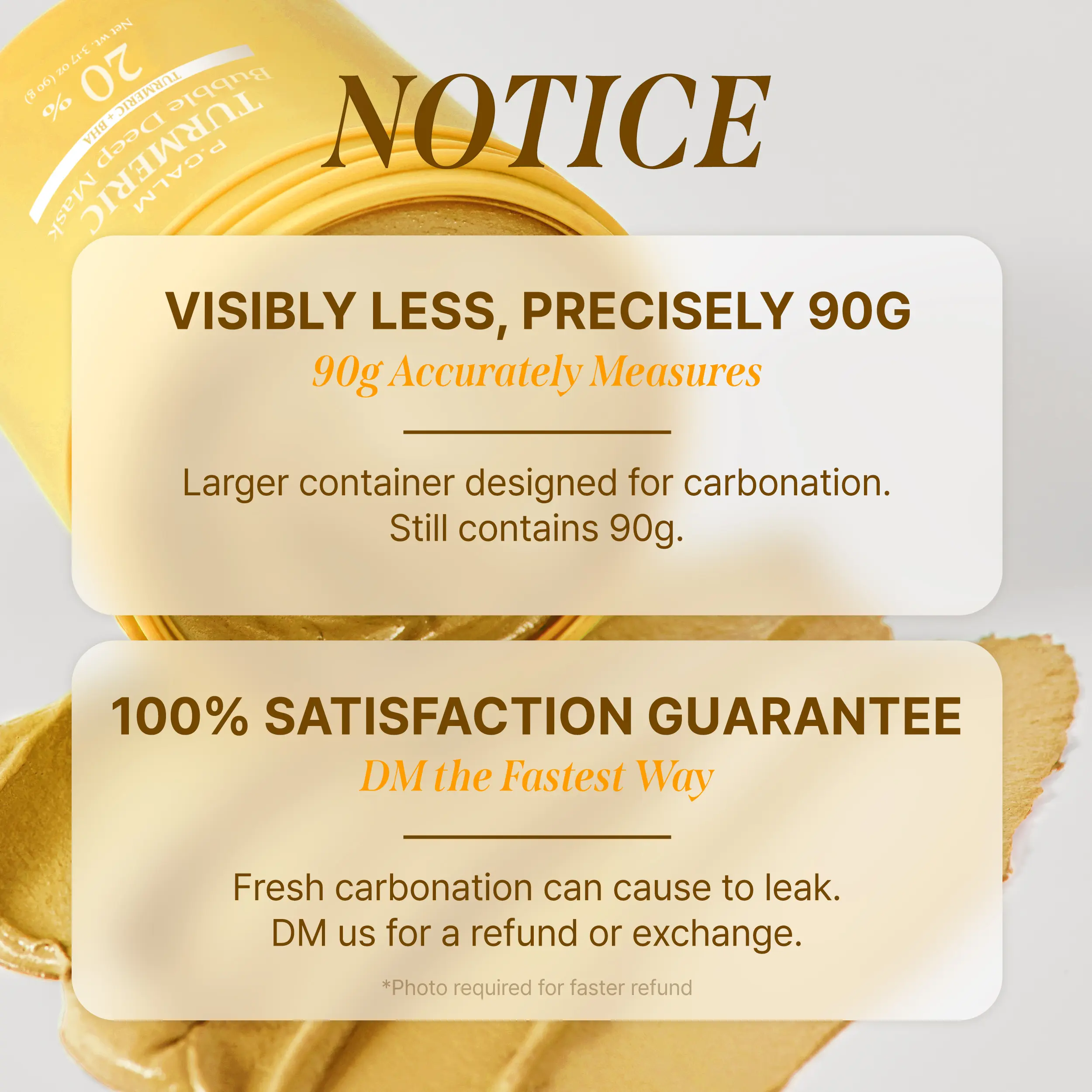 The packaging has extra space for carbonation. Each jar contains the full 90g. No need to worry about missing out on product.