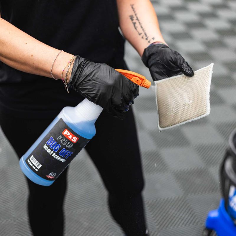 P&S BUG OFF Insect Remover breaks down heavy bug concentrations on the paintwork, front grille, and bumper of your vehicle prior to vehicle washing. Apply BUG OFF liberally to the affected areas of your vehicle and watch bug debris disappear. With its extremely simple spray-on, rinse-off application, P&S BUG OFF Insect Remover will quickly remove insect debris and residues that your car collects on a daily basis, especially while driving on open roads and highways. Insect residue is one of the most damaging contaminants for your vehicle’s paintwork, as it is highly acidic and will eat away at your vehicle’s clear coat within days! If left to sit on your vehicle, the acids of the insect remain will etch into your vehicle’s clear coat, making it extremely difficult to remove marks that appear similar to water spots. Prompt and effective bug removal, using P&S BUG OFF Insect Remover, is critical to make sure your car’s paint remains in its best possible condition.