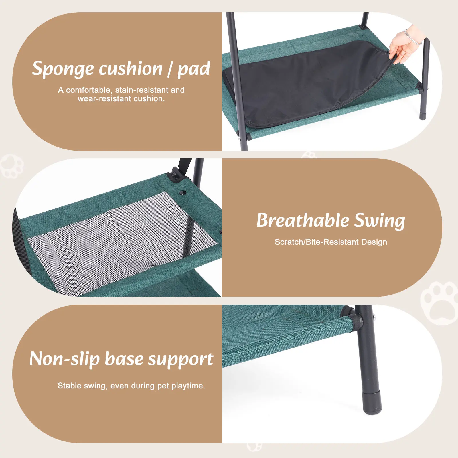 ·Convenient suspension design: the metal hooks are applied to fix to the corners of crates or cages, or additional adjustable straps are applied to hang on most chairs; This hammock can be installed under the chair or in the cage, which can help save space, and also cats naturally like to hide in hidden places