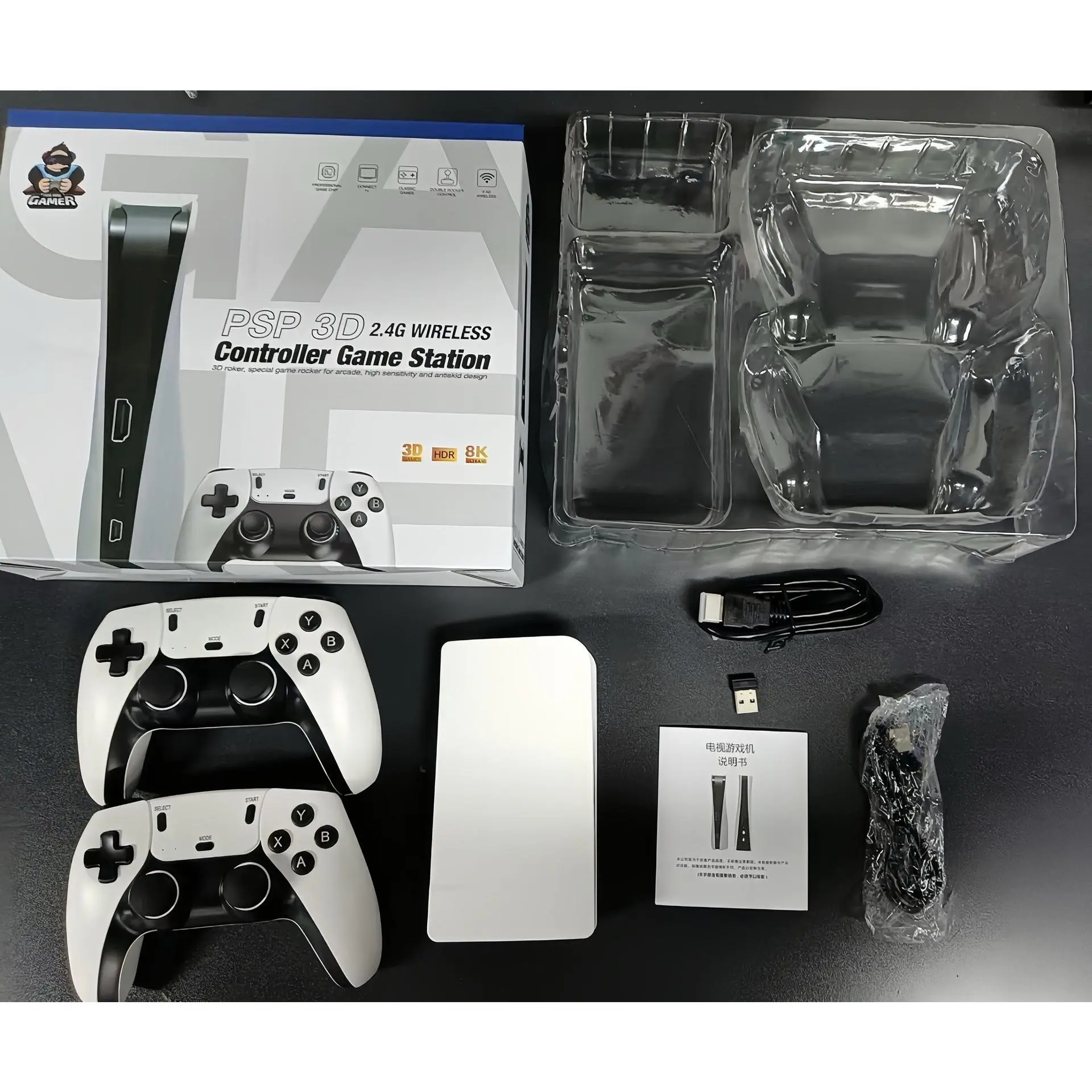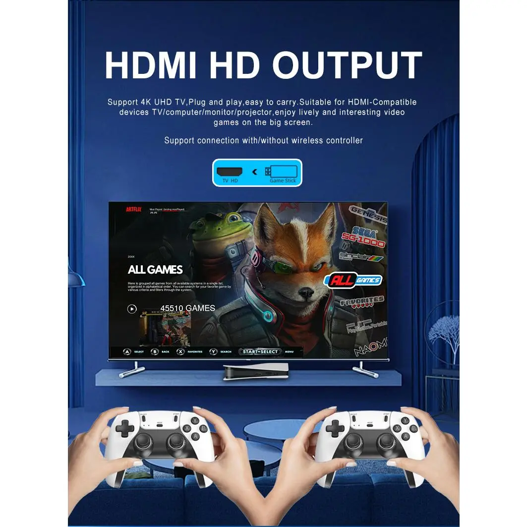 The P5X is a palm-sized mini console, perfect for on-the-go gaming. It comes with a 4K HD Android TV and two wireless controllers. Ideal for double player arcade gaming, this console offers a compact experience. 📦