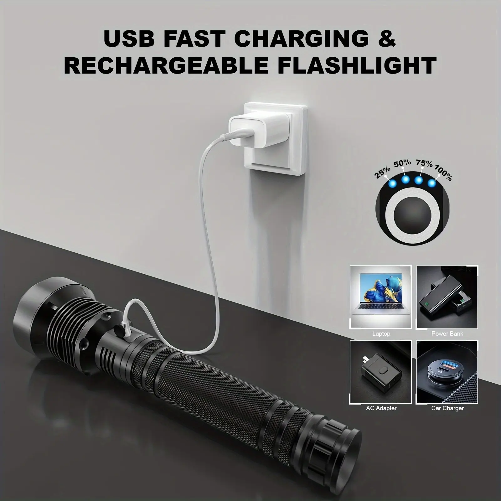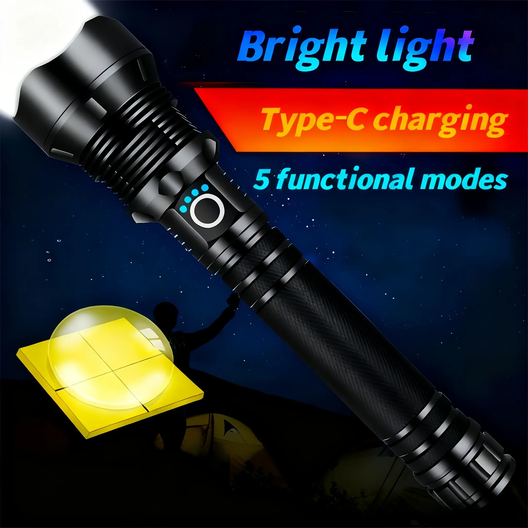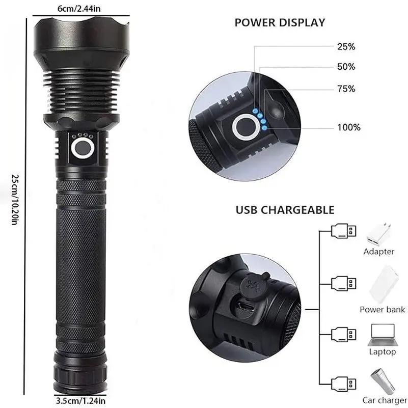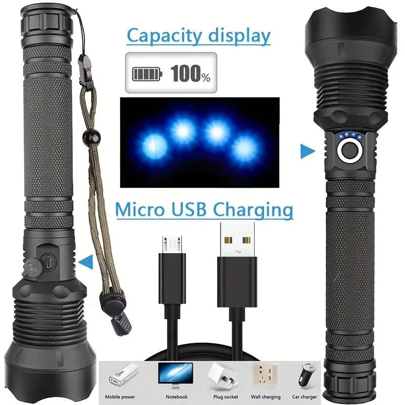 4000 Lumens P70 LED High Lumen Flashlight, Rechargeable Battery & 5 Modes Handheld Torch, IPX7 Waterproof Aluminum Alloy Flashlights For Camping, Outdoor, Emergency, Home, Best Tools/Gifts For Men