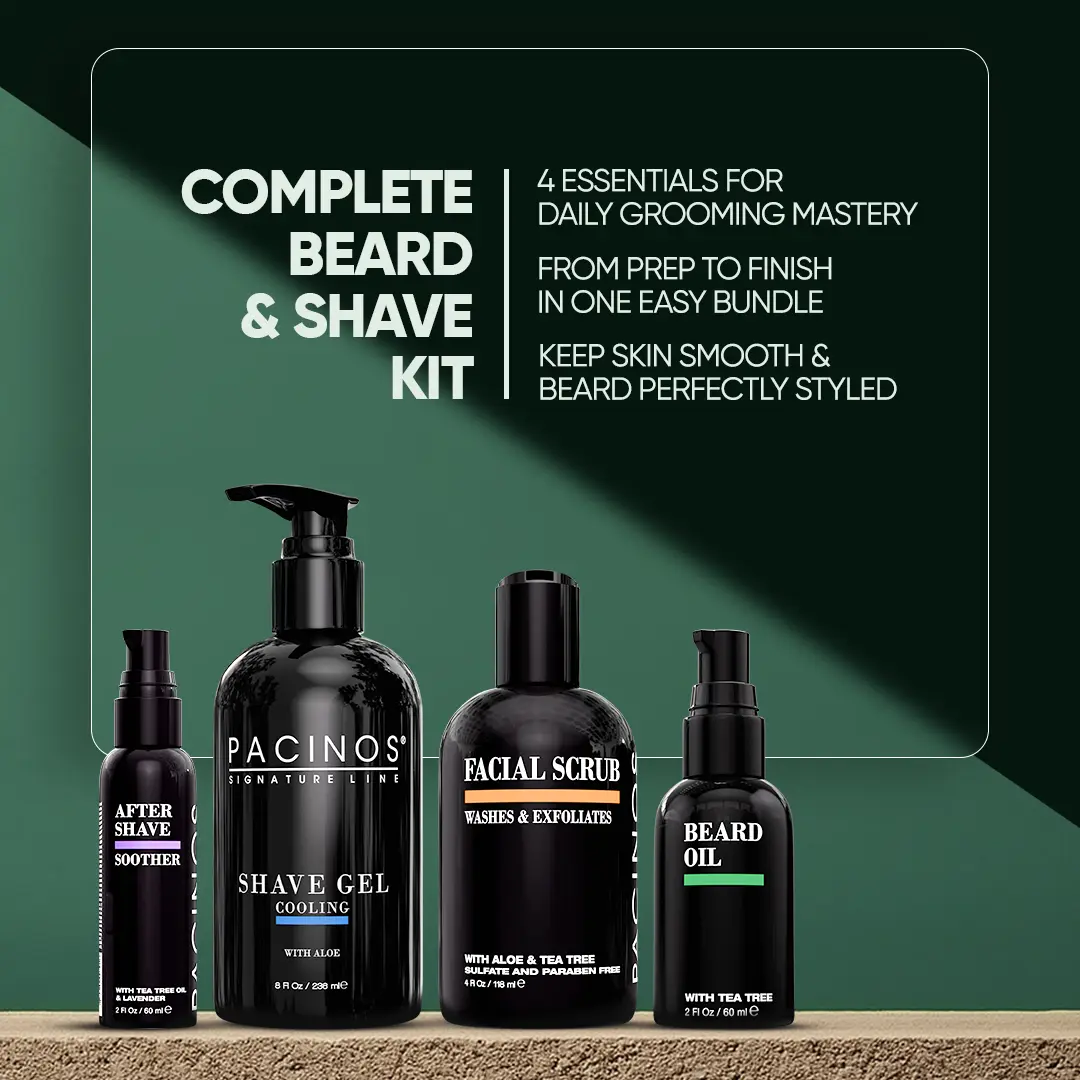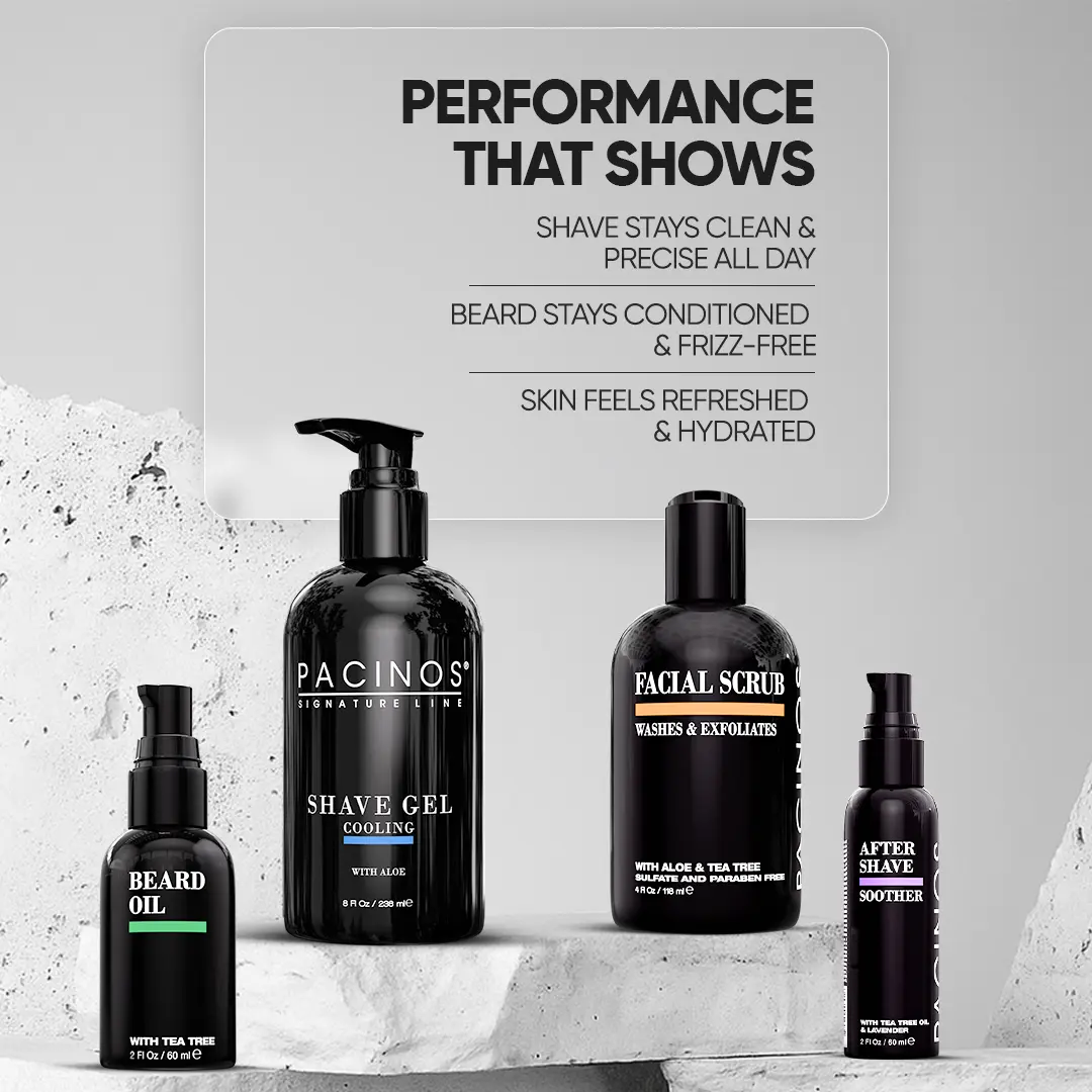 Experience the ultimate shave and grooming ritual with the Pacinos Ultimate Shave Bundle. This complete set is designed for clean, smooth skin and a healthy, polished beard every day.