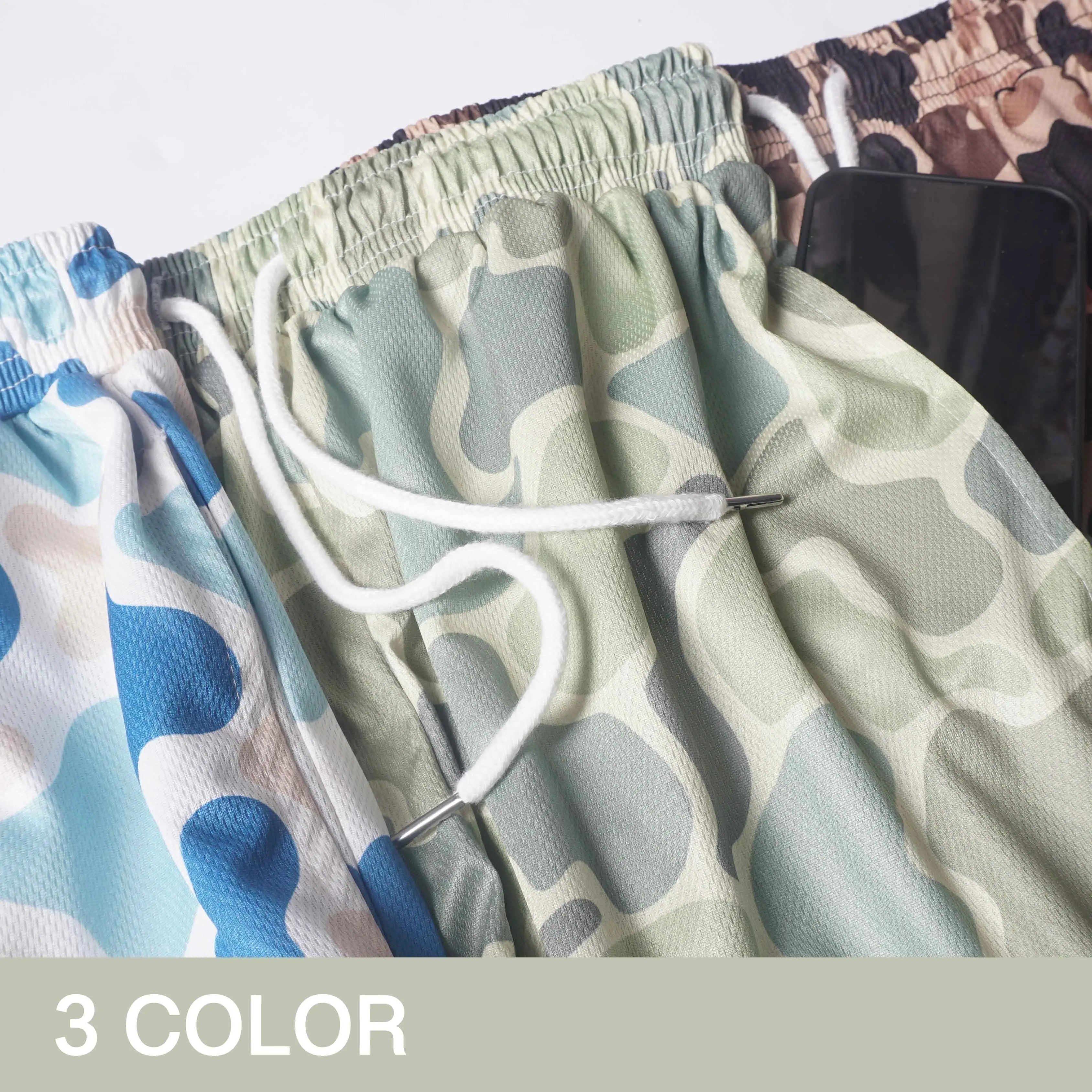 Pack 3 Duck Hunting Camo Shorts - 5 Inch Inseam Camo Mesh Design for Men & Women Ideal Gym Wear & Gifts Breathable & Comfortable