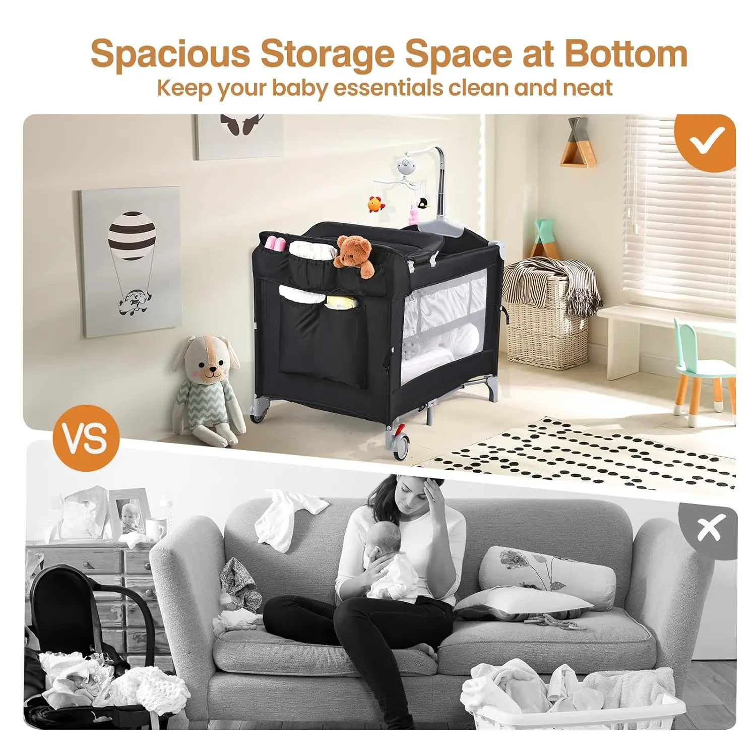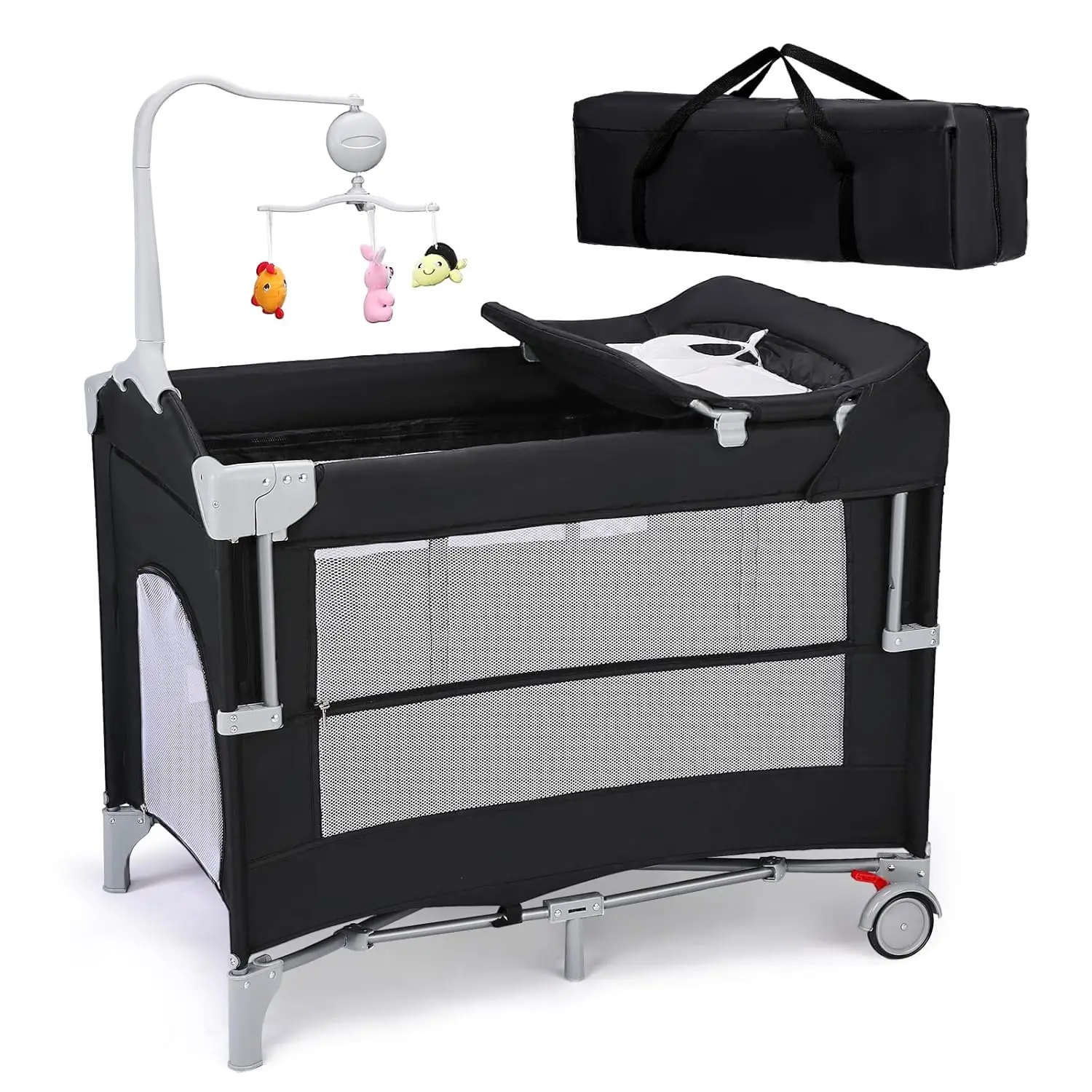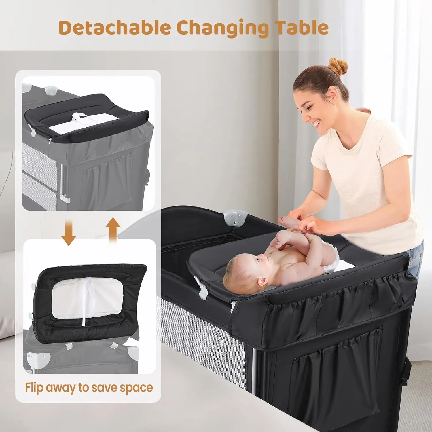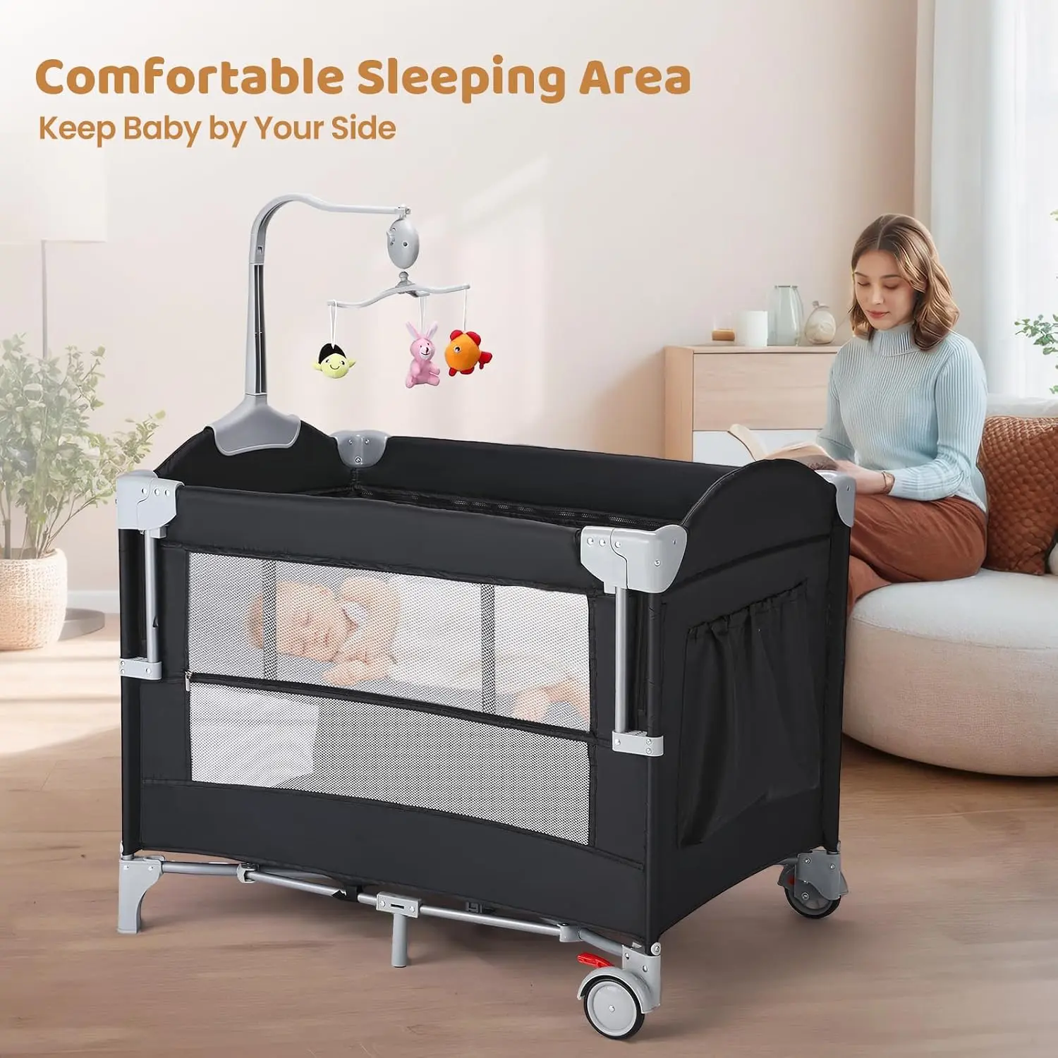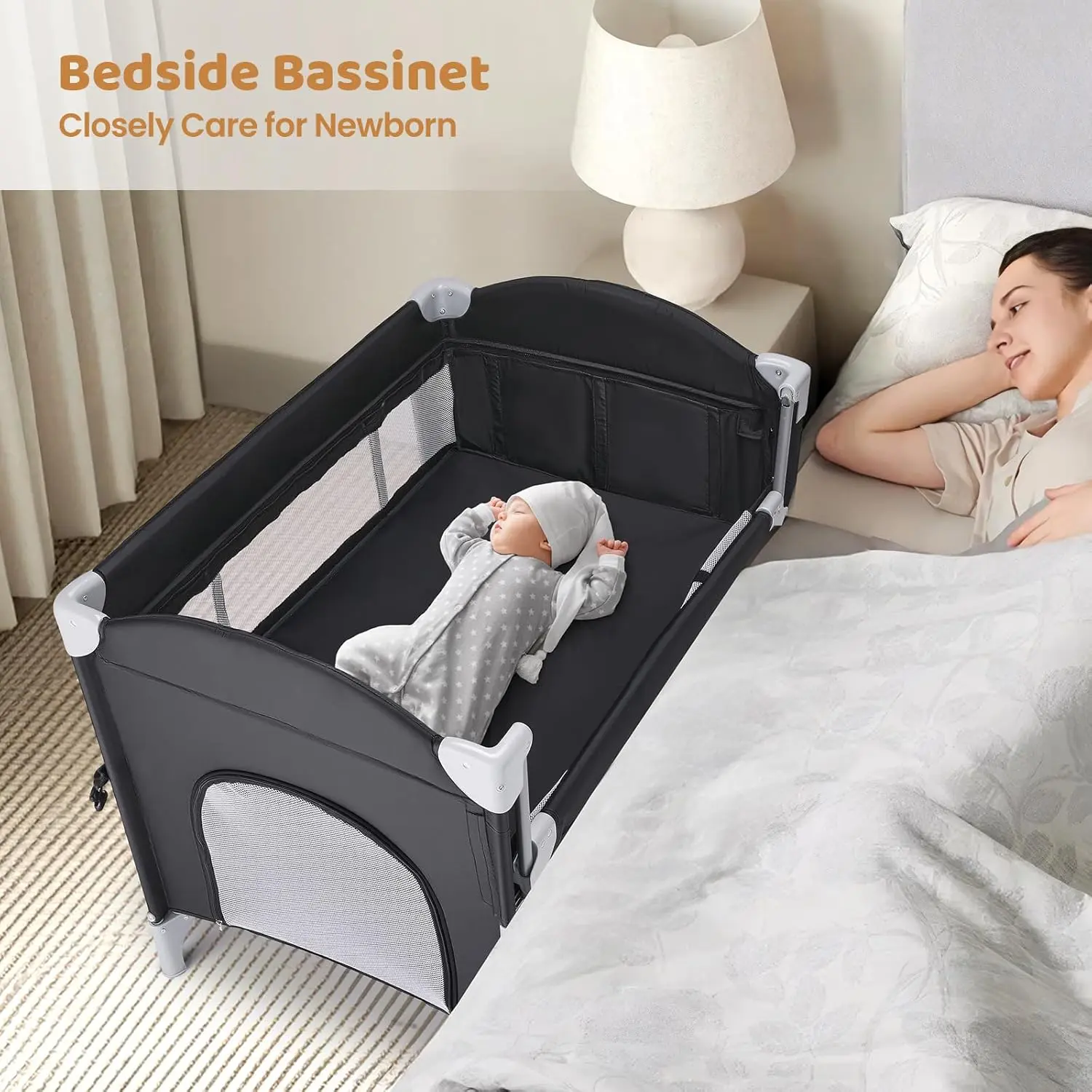 JOYMOR Pack and Play with Changing Table, 5-in-1 Portable Baby Bedside Bassinet with Storage, Travel Crib with Carry Bag, Compact FoldJOYMOR Pack and Play with Changing Table, 5-in-1 Portable Baby Bedside Bassinet with Storage, Travel Crib with Carry Bag, Compact Fold